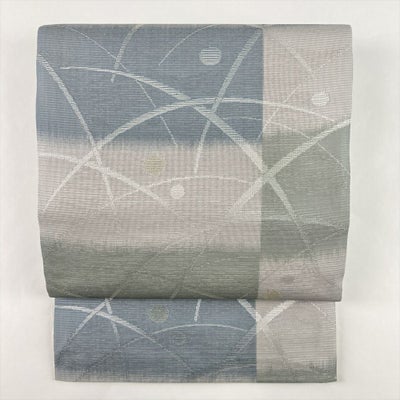 (中古)夏袋帯 灰青 灰緑 セミフォーマル 六通 絽 銀糸 金糸 露芝文 絹のレビュー