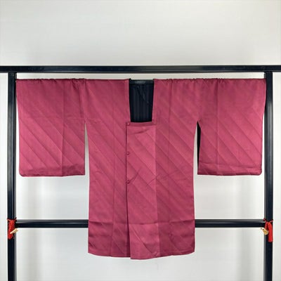 (中古)道行コート 紫 ボルドー 無地感 ななめ縞 リバーシブル 縦縞 袷 未洗い【身丈】92cm 【裄丈】73cmのレビュー