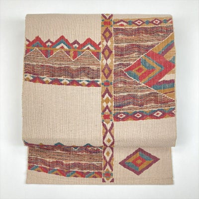 (中古)名古屋帯 ベージュ マルチカラー カジュアル 幾何学 松葉仕立て 未洗い MS914のレビュー