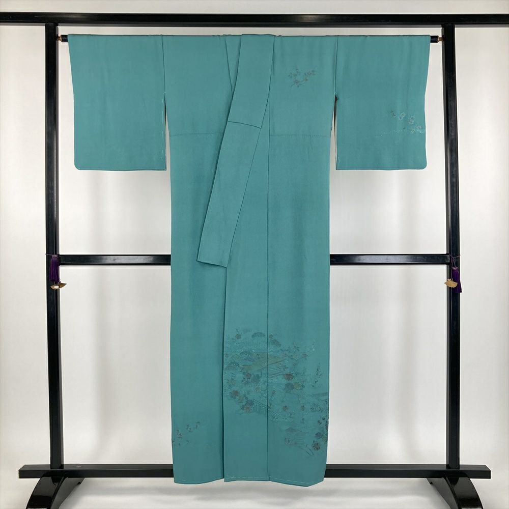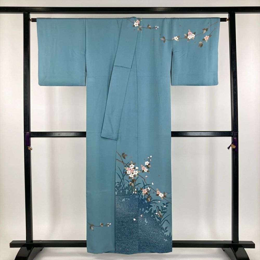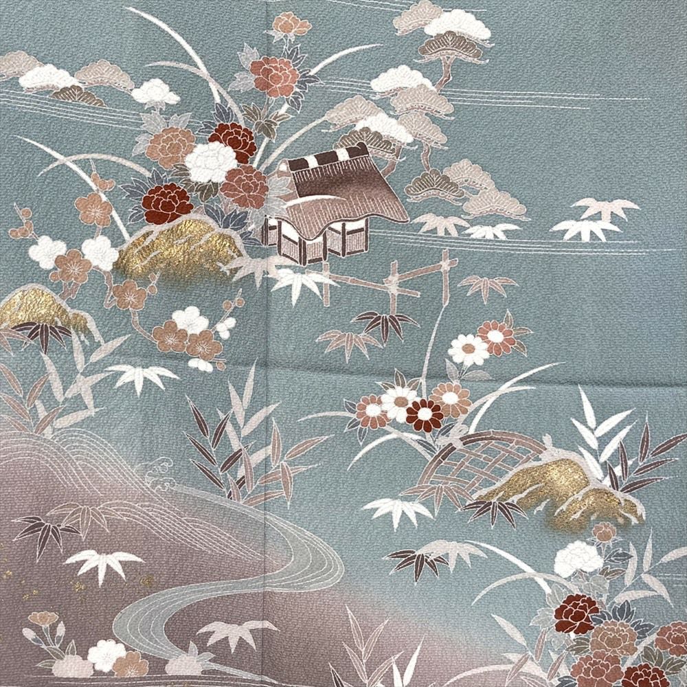 他の画像を見る (中古)訪問着 灰青 灰紫 フォーマル セミフォーマル ちりめん 一つ紋 ぼかし染め 金彩 家屋 庭園 流水 四季花 袷 SS【身丈】152cm 【裄丈】64cm ¥ 33,000 税込 お気に入りに登録する