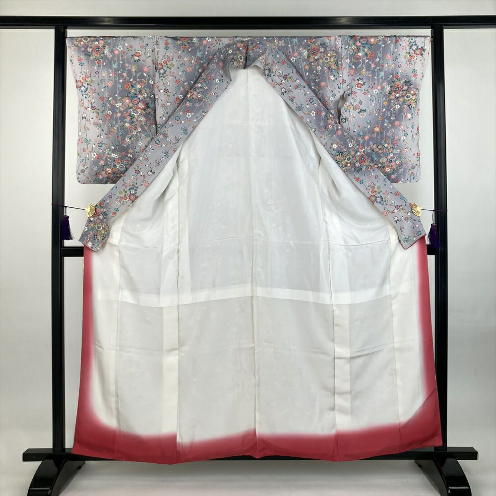 他の画像を見る (中古) 訪問着 灰紫色 グレー 紫系 セミフォーマル ちりめん 堰出し友禅調 金彩 銀彩 刺繍 蔓花 袷 SS 【身丈】151cm【裄丈】64cm ¥ 33,000 税込 お気に入りに登録する