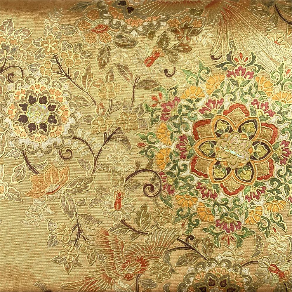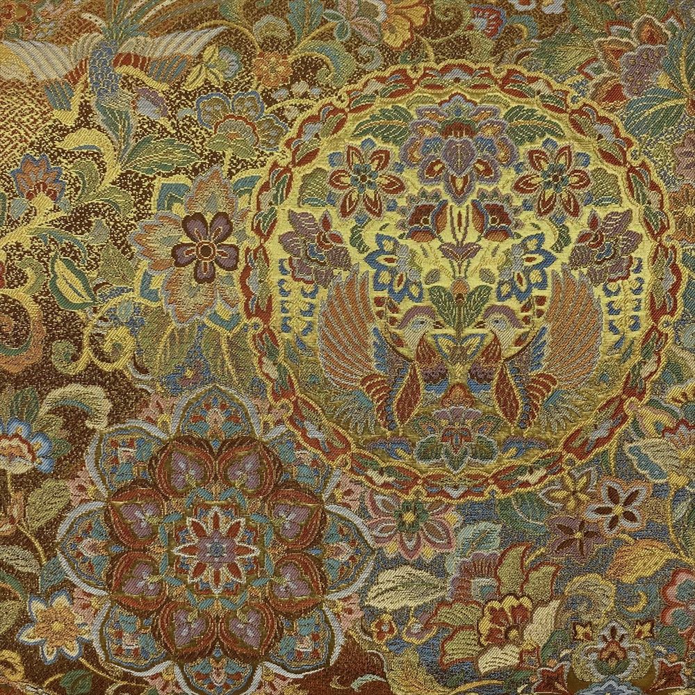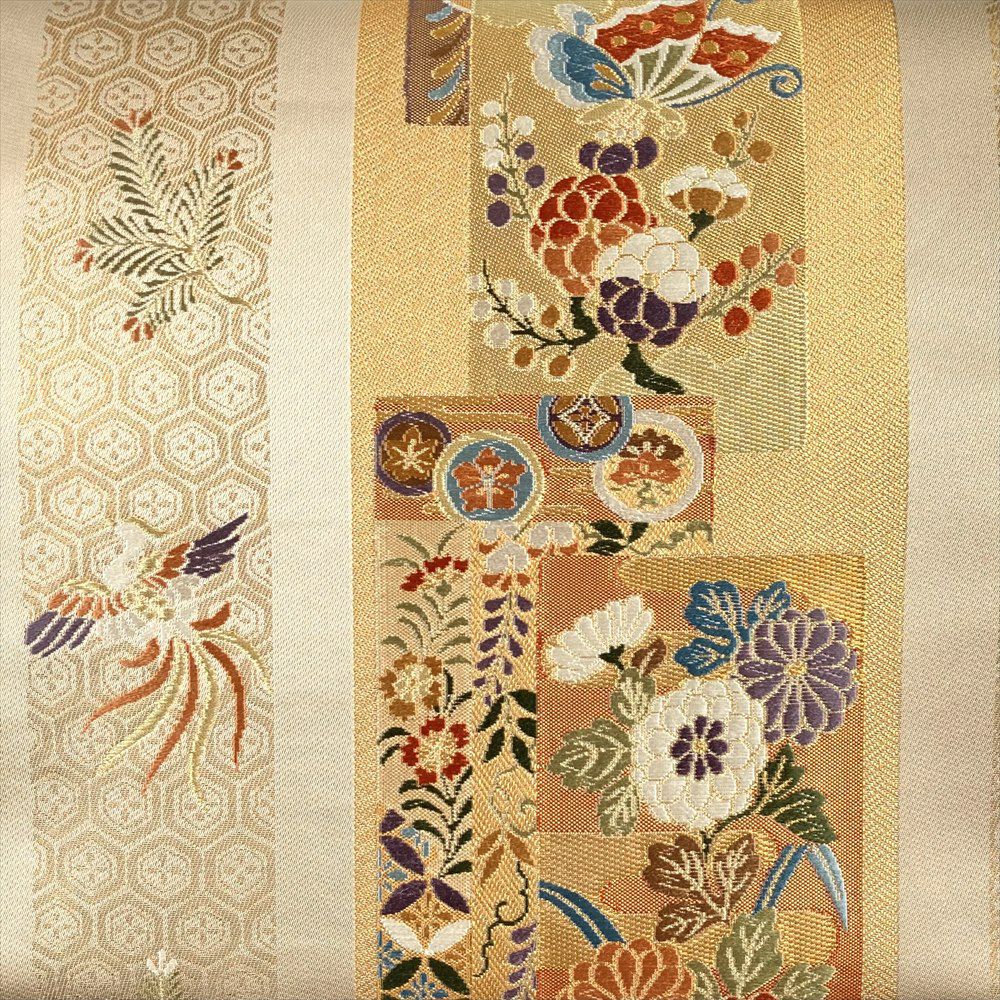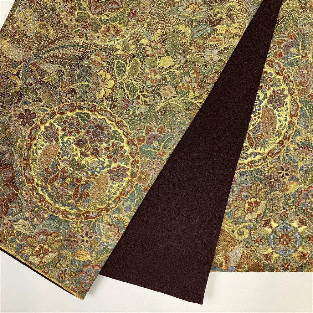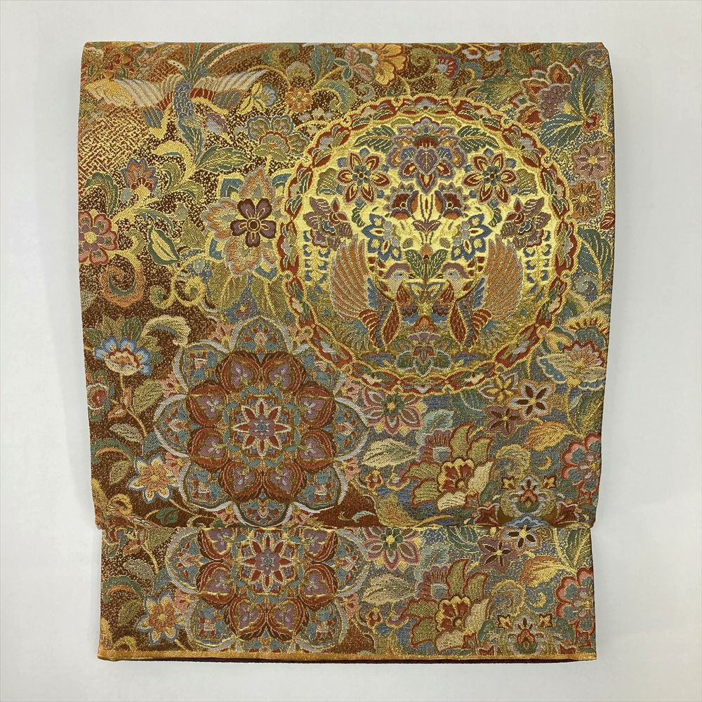 他の画像を見る (中古)袋帯 茶 切箔 色糸 フォーマル セミフォーマル 六通 切り嵌め 華文 花唐草 花喰い鳥 格天井 通常価格 ¥ 11,000 のところ ¥ 7,700 税込 お気に入りに登録する