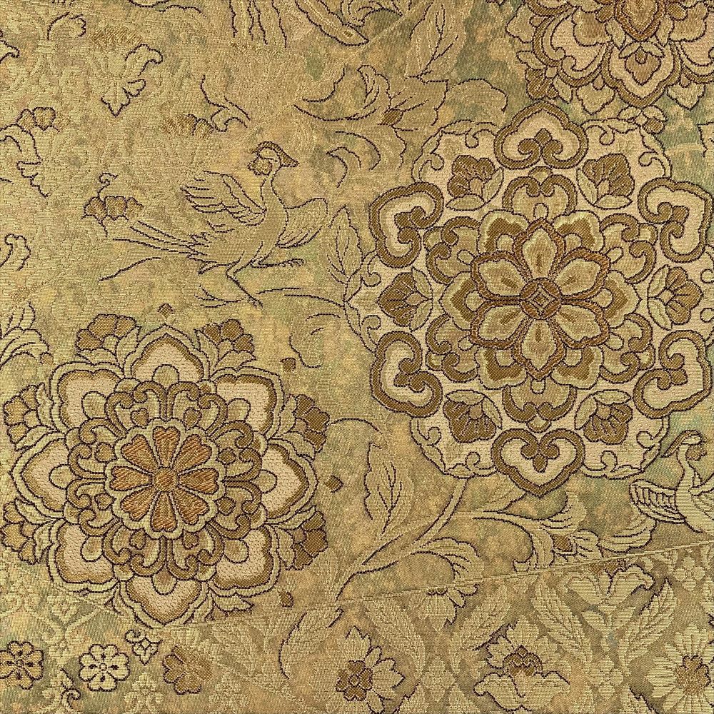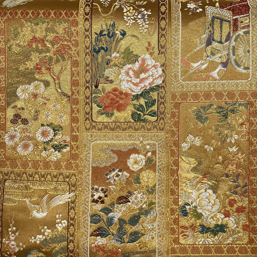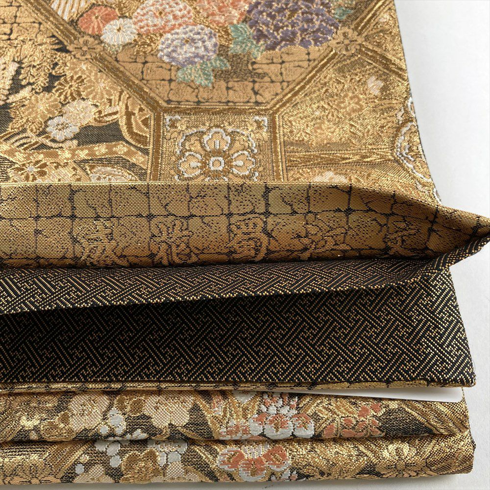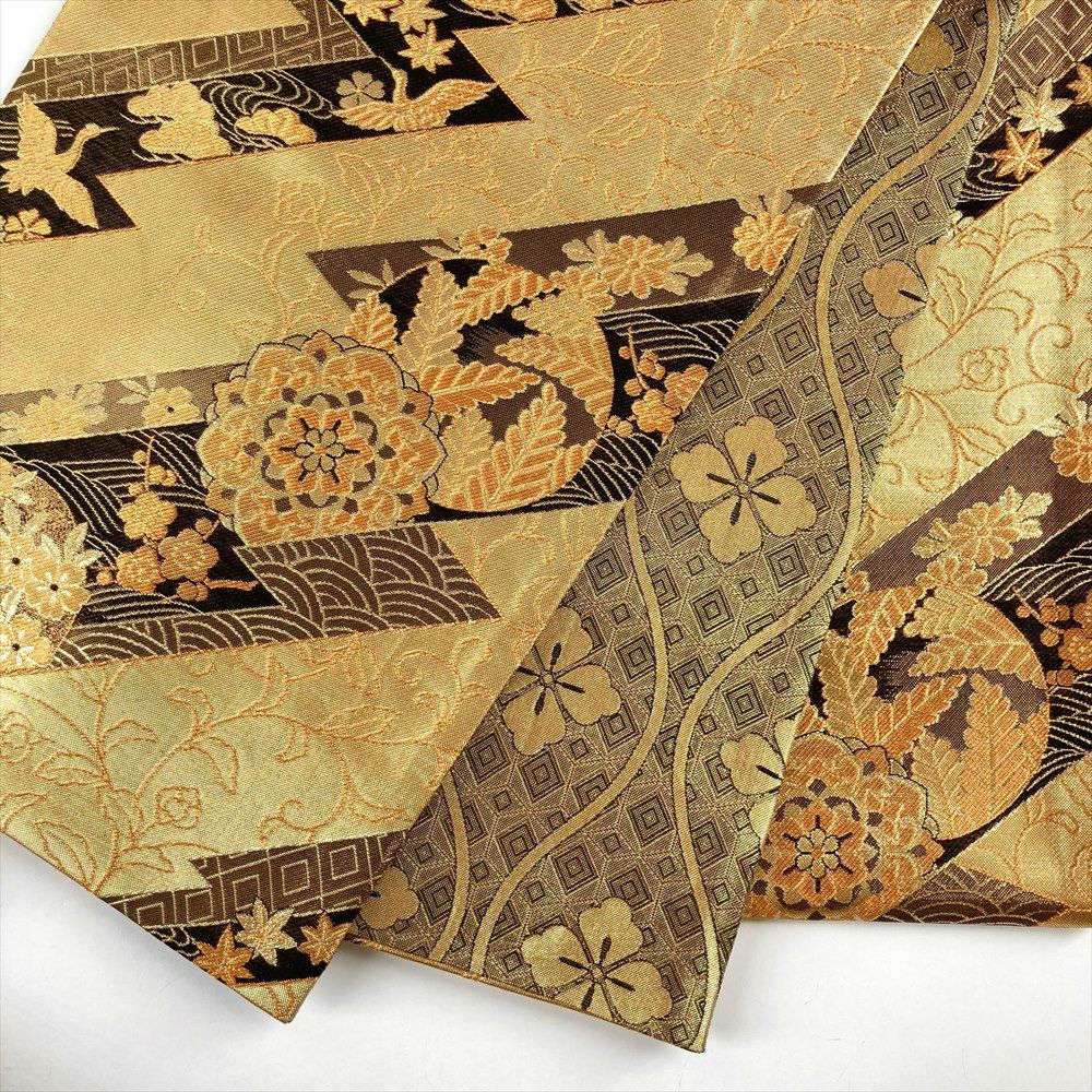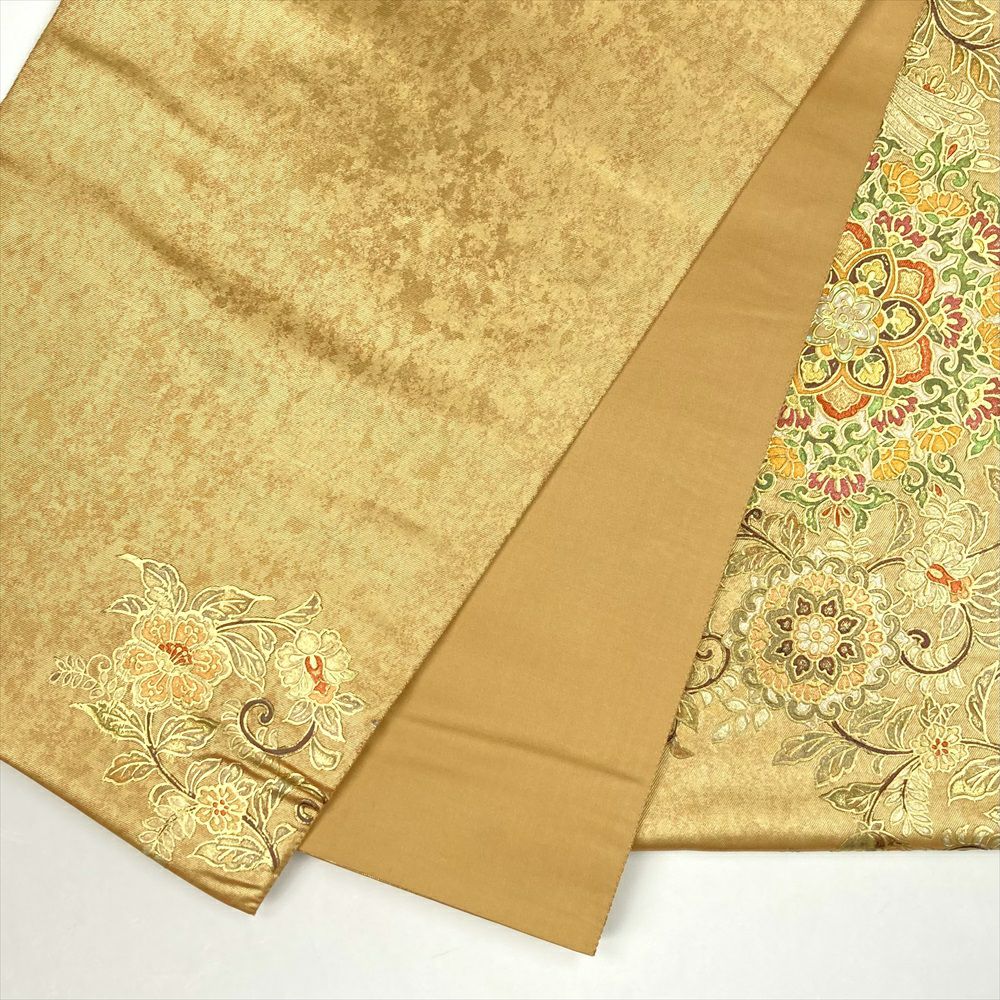 他の画像を見る (中古)袋帯 茶 切箔 色糸 フォーマル セミフォーマル 六通 切り嵌め 華文 花唐草 花喰い鳥 格天井 通常価格 ¥ 11,000 のところ ¥ 7,700 税込 お気に入りに登録する