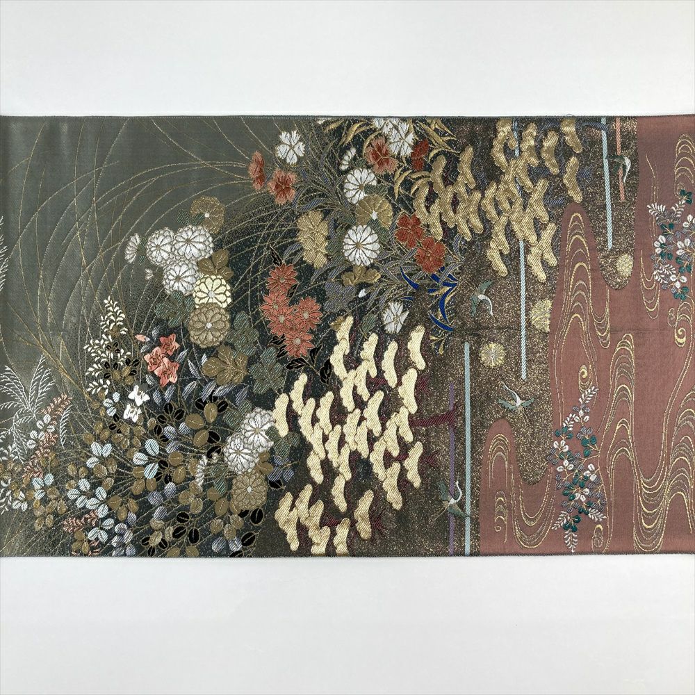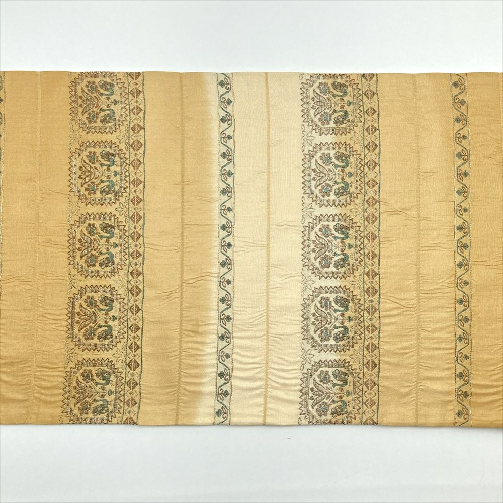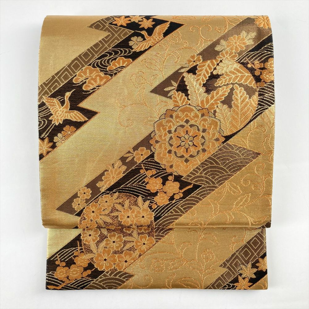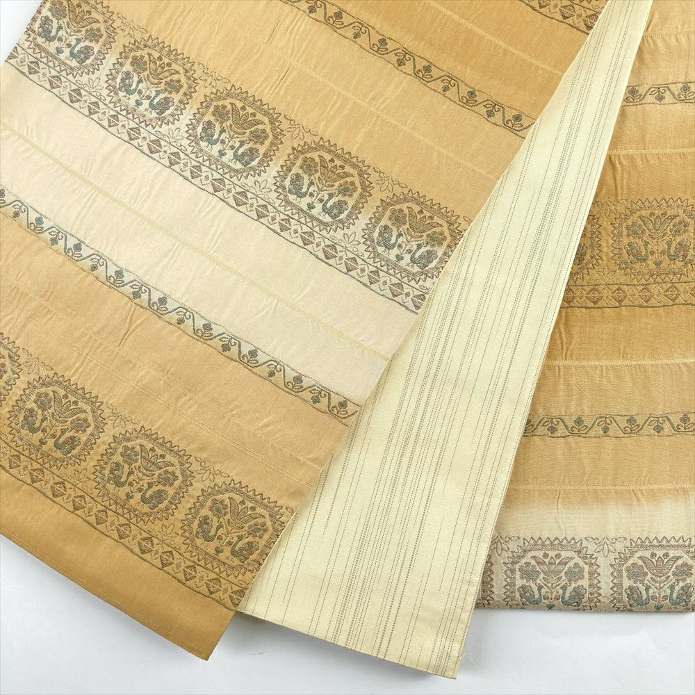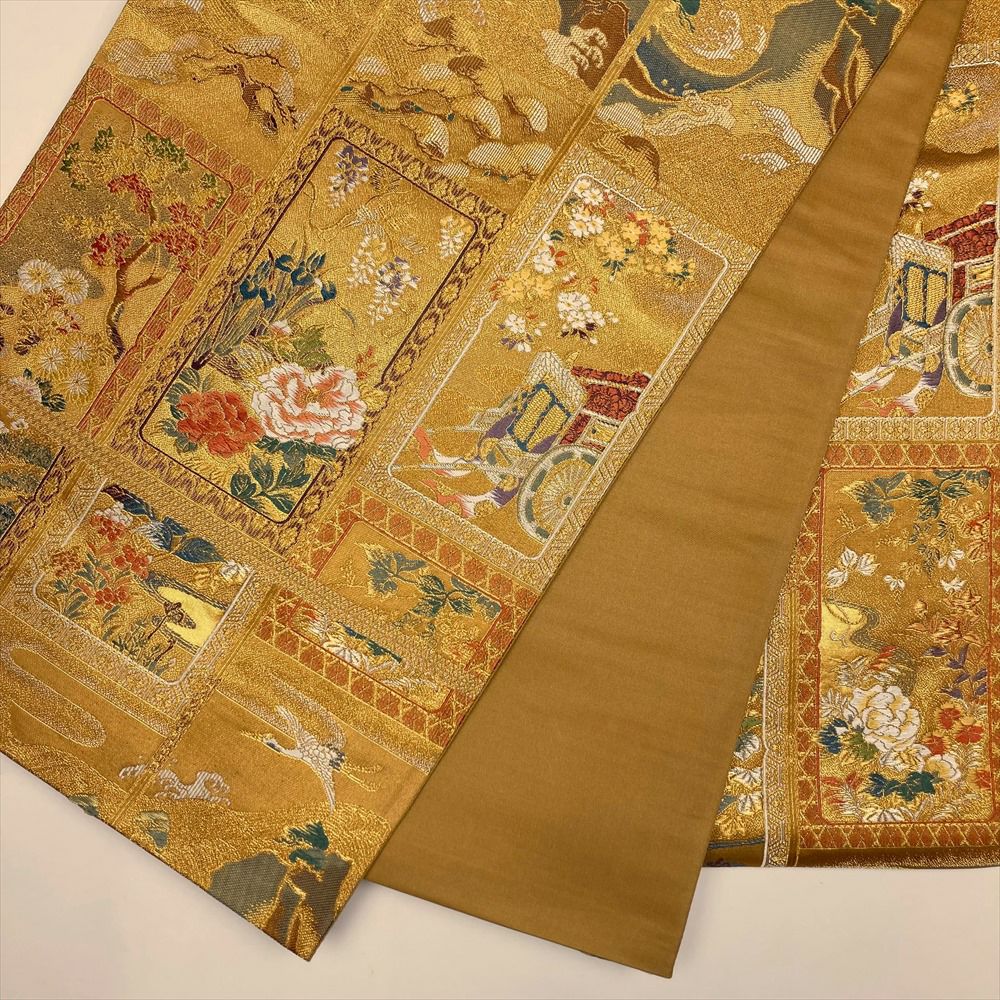 他の画像を見る (中古)袋帯 茶 切箔 色糸 フォーマル セミフォーマル 六通 切り嵌め 華文 花唐草 花喰い鳥 格天井 通常価格 ¥ 11,000 のところ ¥ 7,700 税込 お気に入りに登録する
