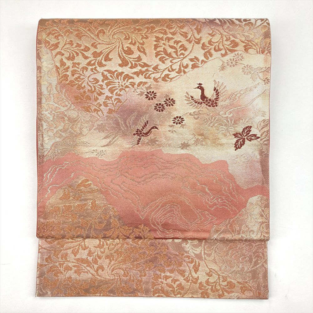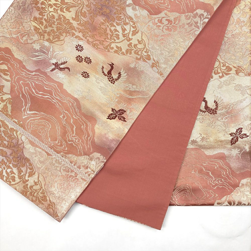 他の画像を見る (中古)袋帯 紅梅色 ピンク セミフォーマル カジュアル 六通 切箔 金糸 色糸 霞取り 花唐草 天平文 花鳥 通常価格 ¥ 8,800 のところ ¥ 6,160 税込 お気に入りに登録する