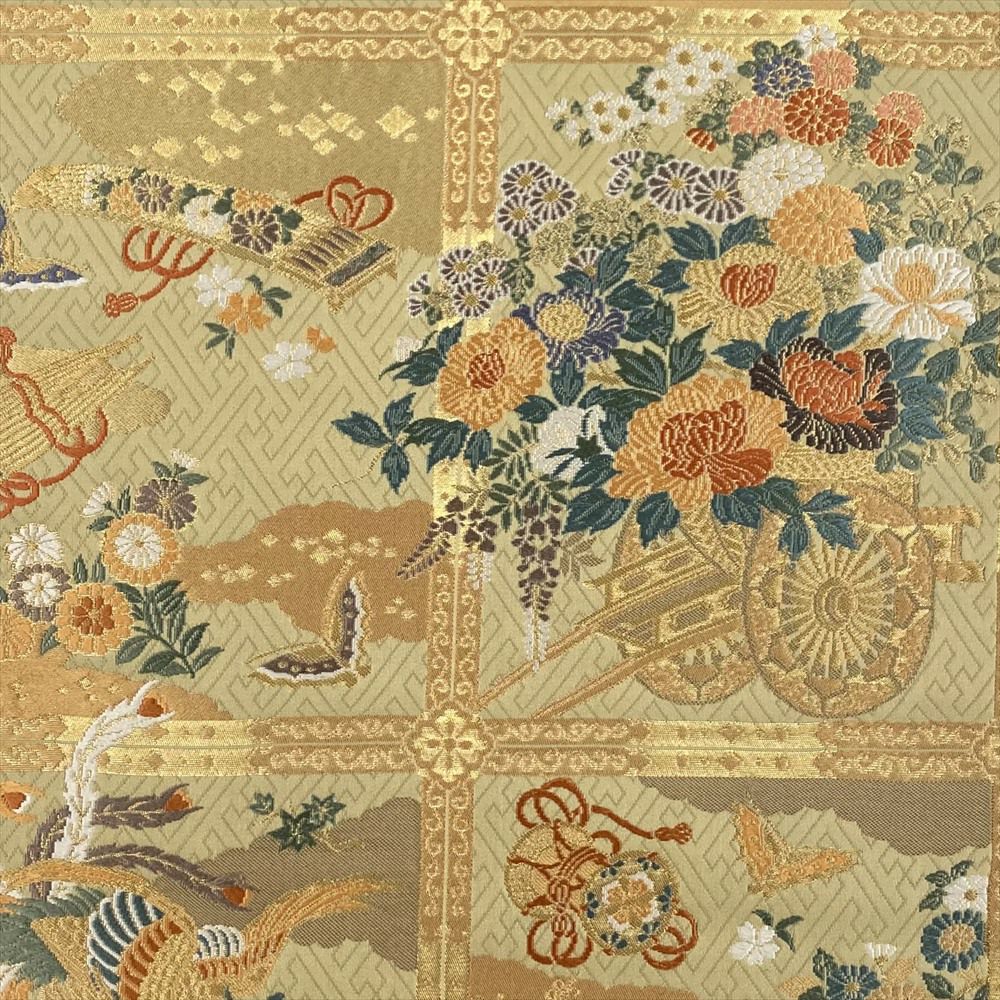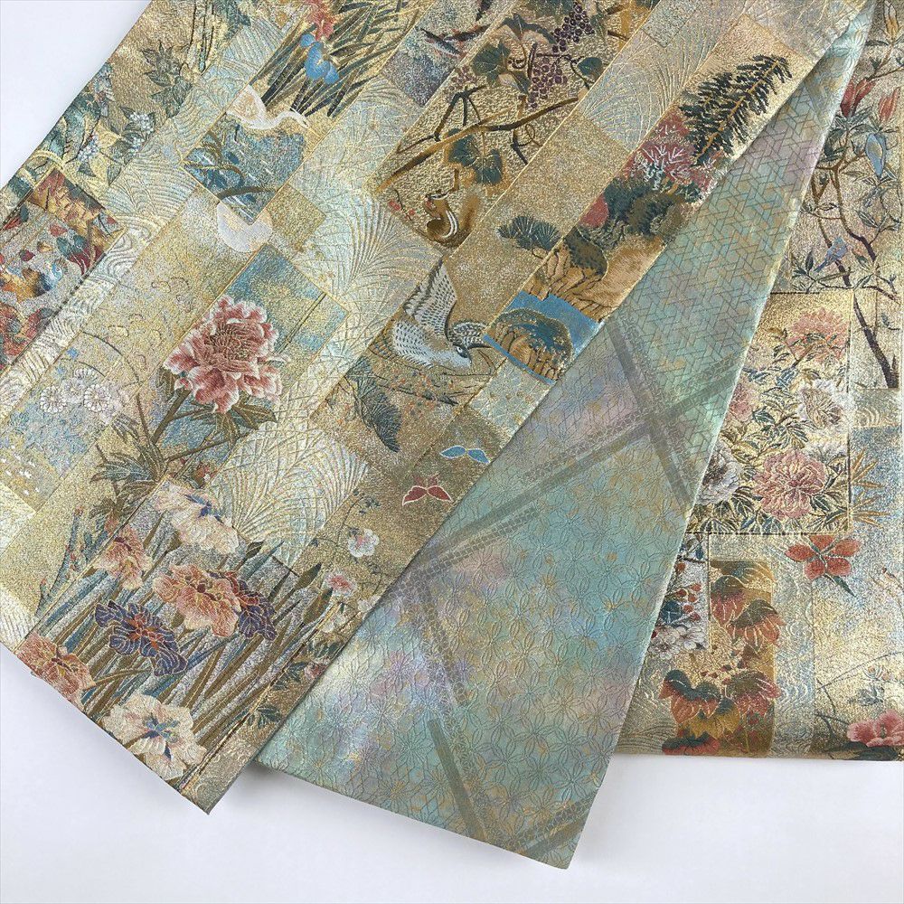 他の画像を見る (中古)袋帯 緑 フォーマルセミフォーマル 六通 金糸 色糸 切り嵌め 花鳥 蜀江華文 天平文 オリエンタル 通常価格 ¥ 16,500 のところ ¥ 11,550 税込 お気に入りに登録する