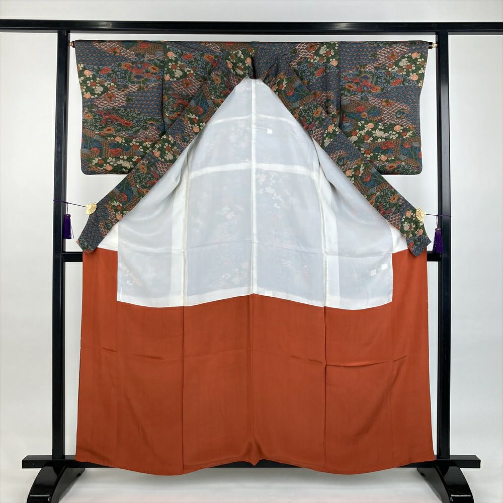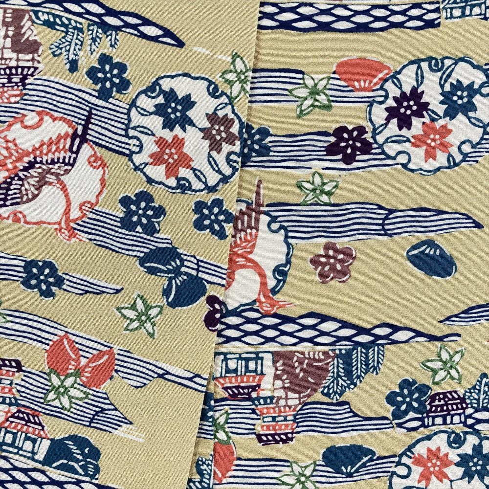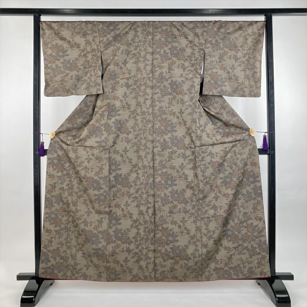 他の画像を見る (中古)小紋 灰緑 薄茶 カジュアル ちりめん 型絵染め 花鳥 扇子 吉祥文 袷 SS【身丈】149cm【裄丈】62cm 通常価格 ¥ 11,000 のところ ¥ 7,700 税込 お気に入りに登録する