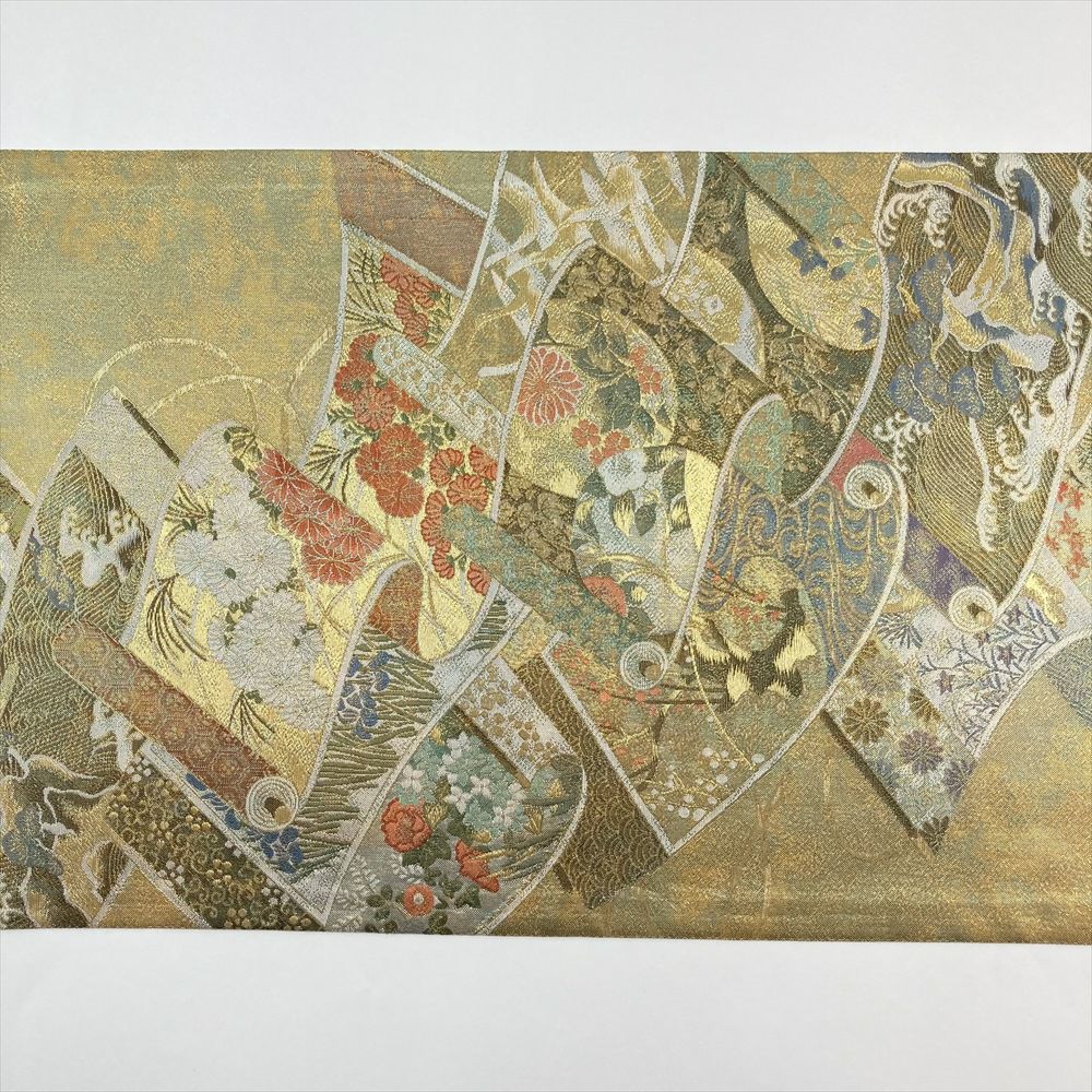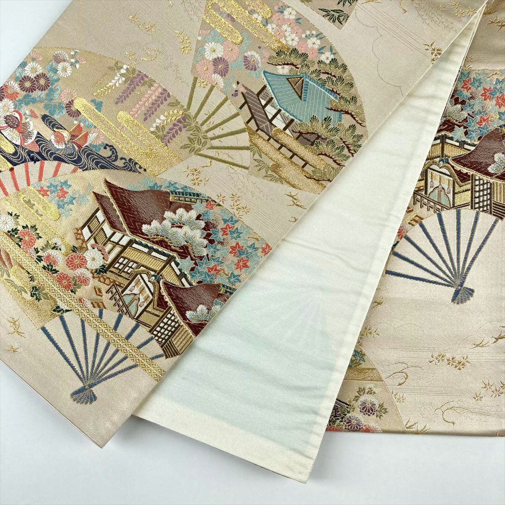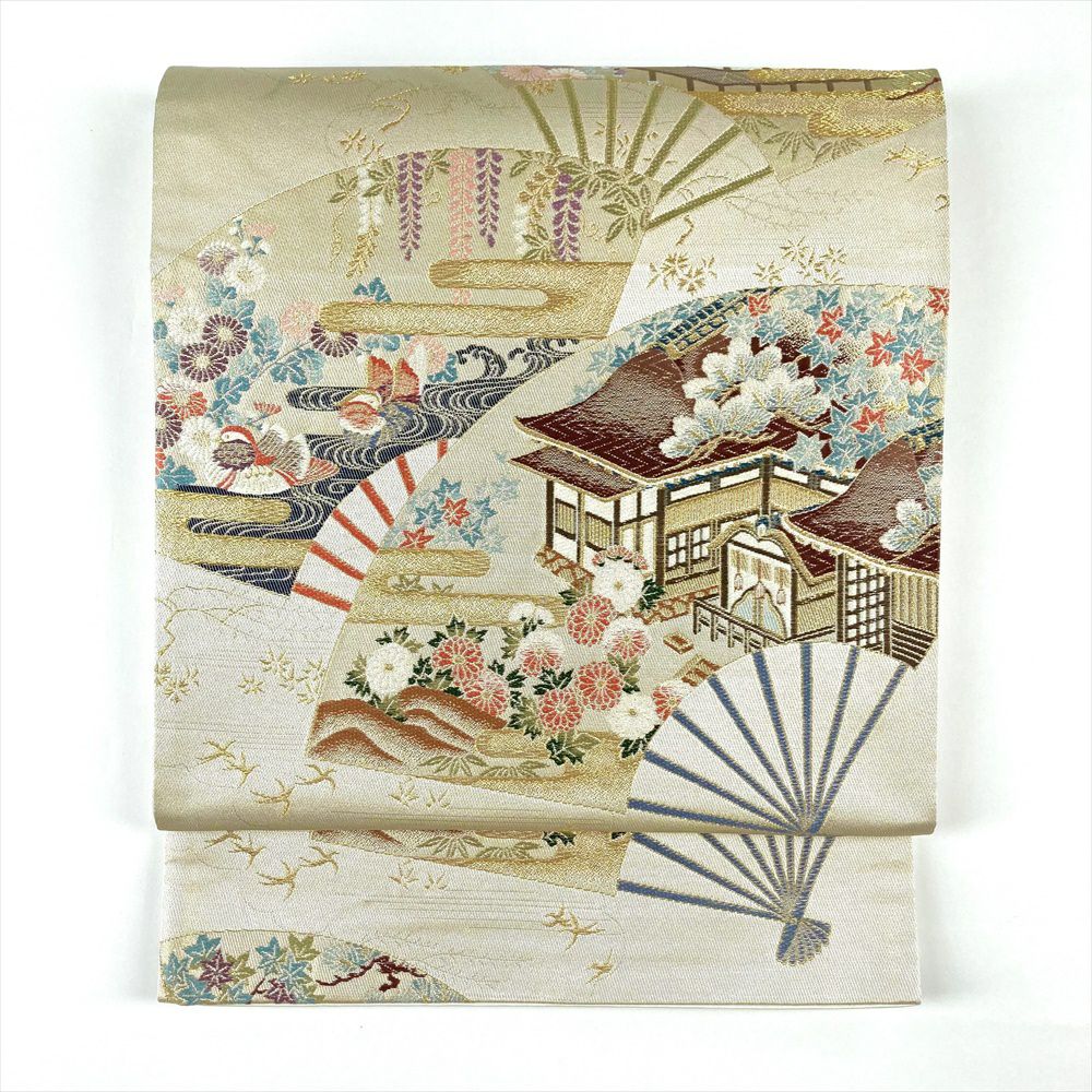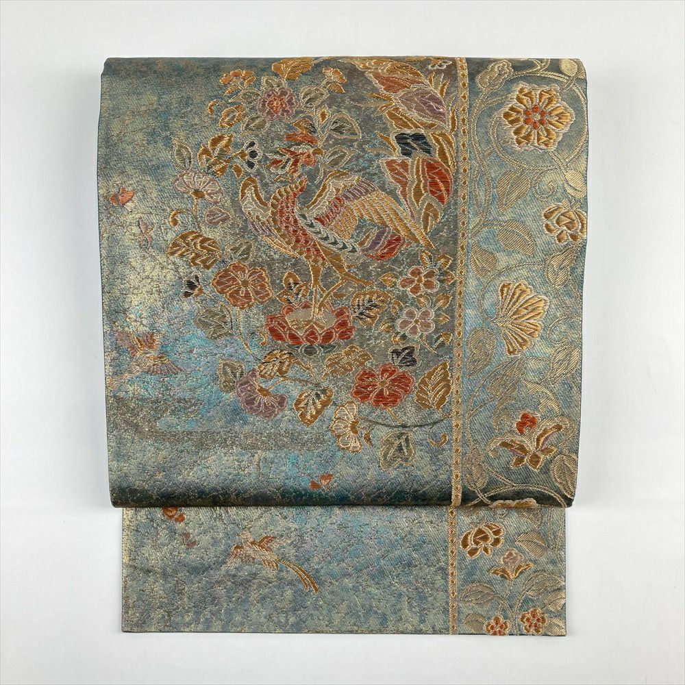 他の画像を見る (中古)袋帯 薄水色 金 銀 フォーマル セミフォーマル 六通 引箔 扇面取り 花鳥 御所車 雲 「瑞宝の匠」 通常価格 ¥ 16,500 のところ ¥ 11,550 税込 お気に入りに登録する