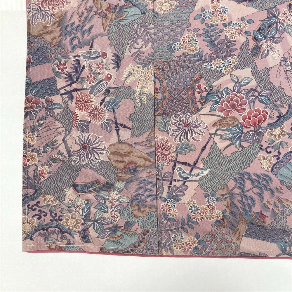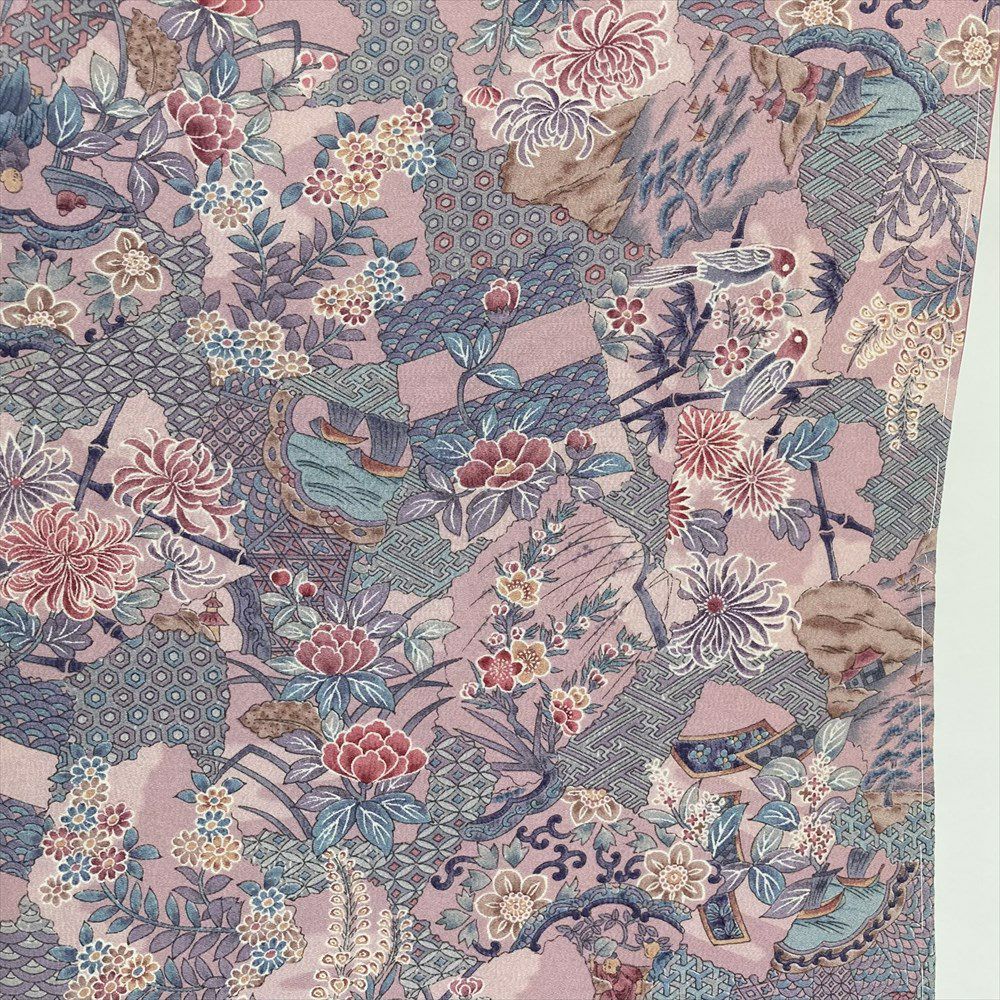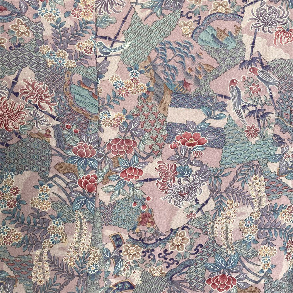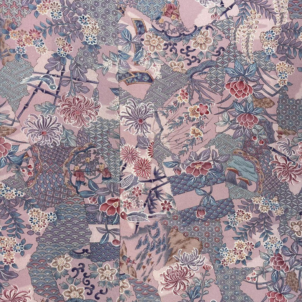 他の画像を見る (中古)小紋 灰ピンク カジュアル ちりめん 染め 破れ色紙 花鳥 吉祥文 袷 S【身丈】156.5cm【裄丈】67cm 通常価格 ¥ 16,500 のところ ¥ 11,550 税込 お気に入りに登録する
