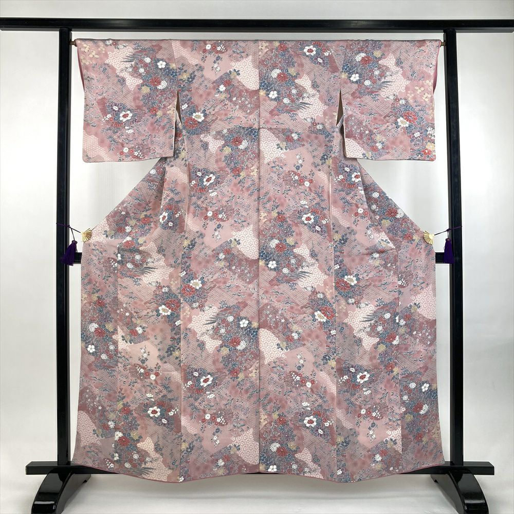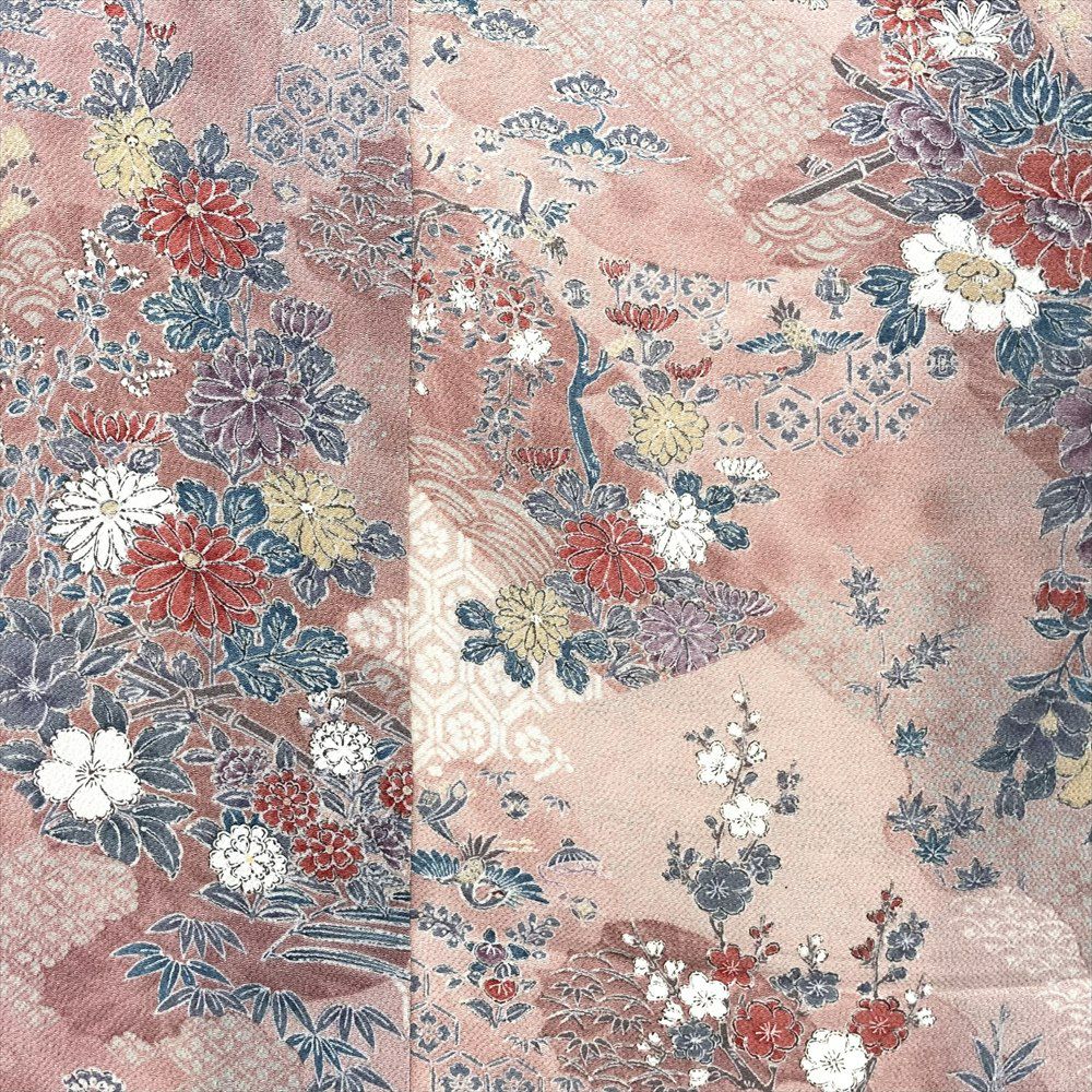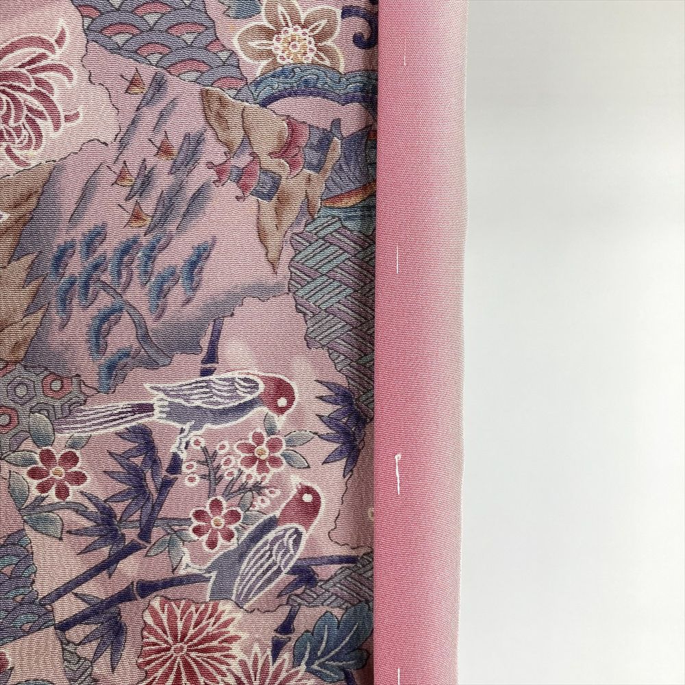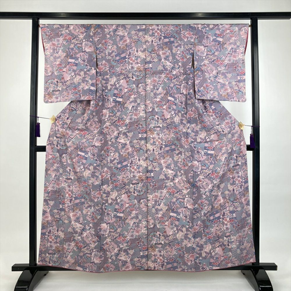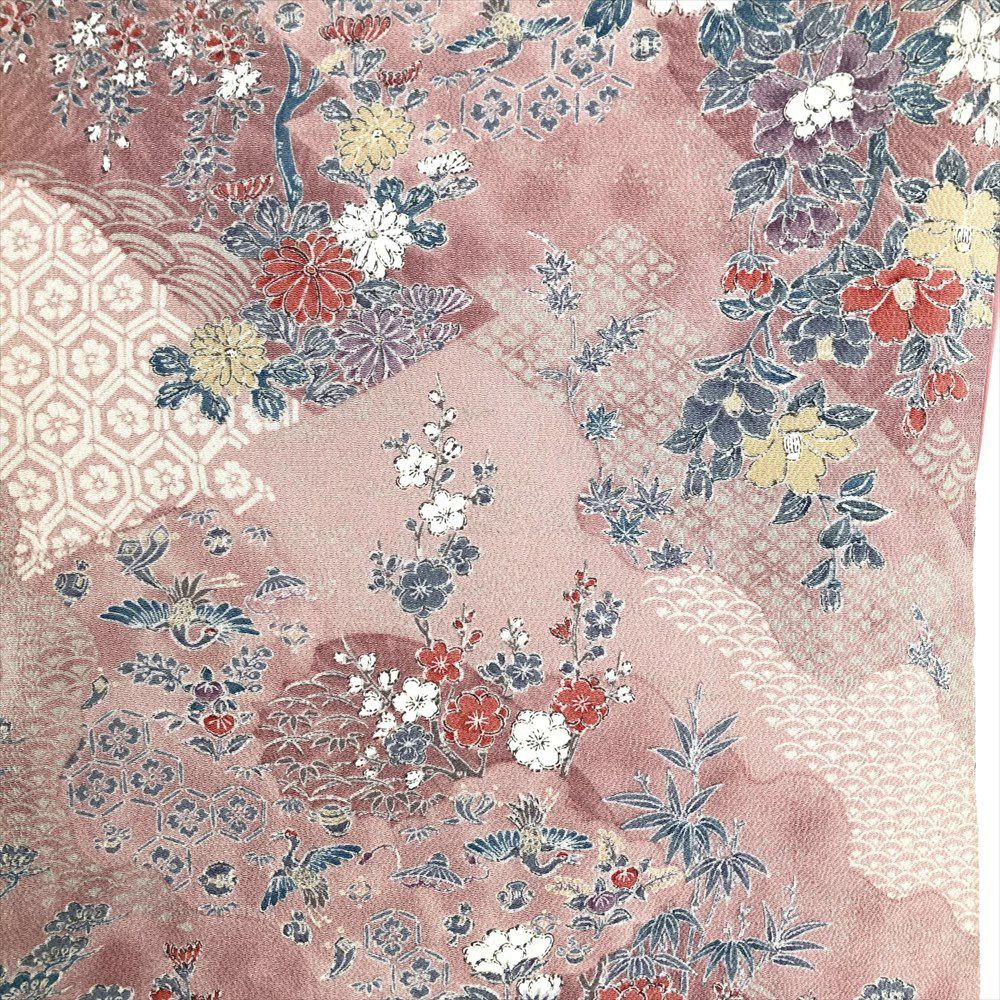 他の画像を見る (中古)小紋 灰ピンク カジュアル ちりめん 染め 破れ色紙 花鳥 吉祥文 袷 S【身丈】156.5cm【裄丈】67cm 通常価格 ¥ 16,500 のところ ¥ 11,550 税込 お気に入りに登録する