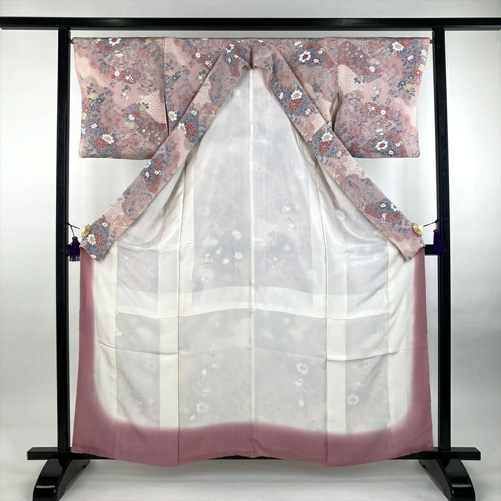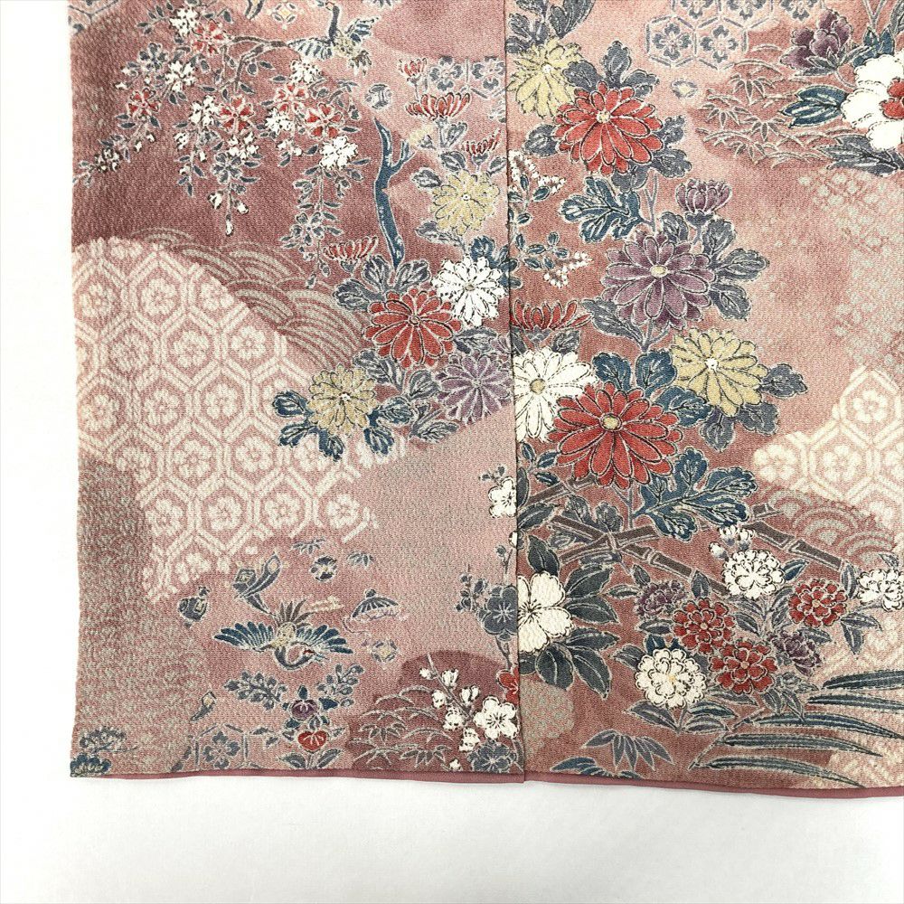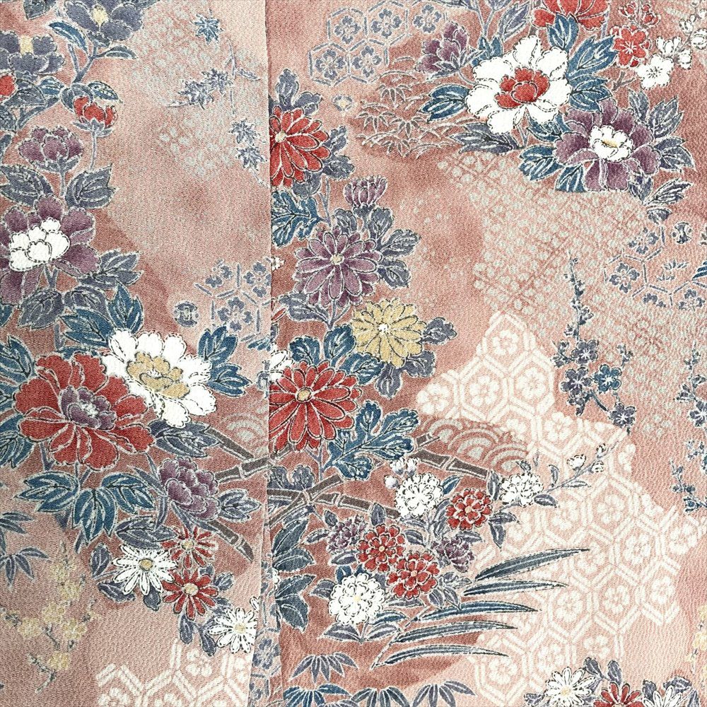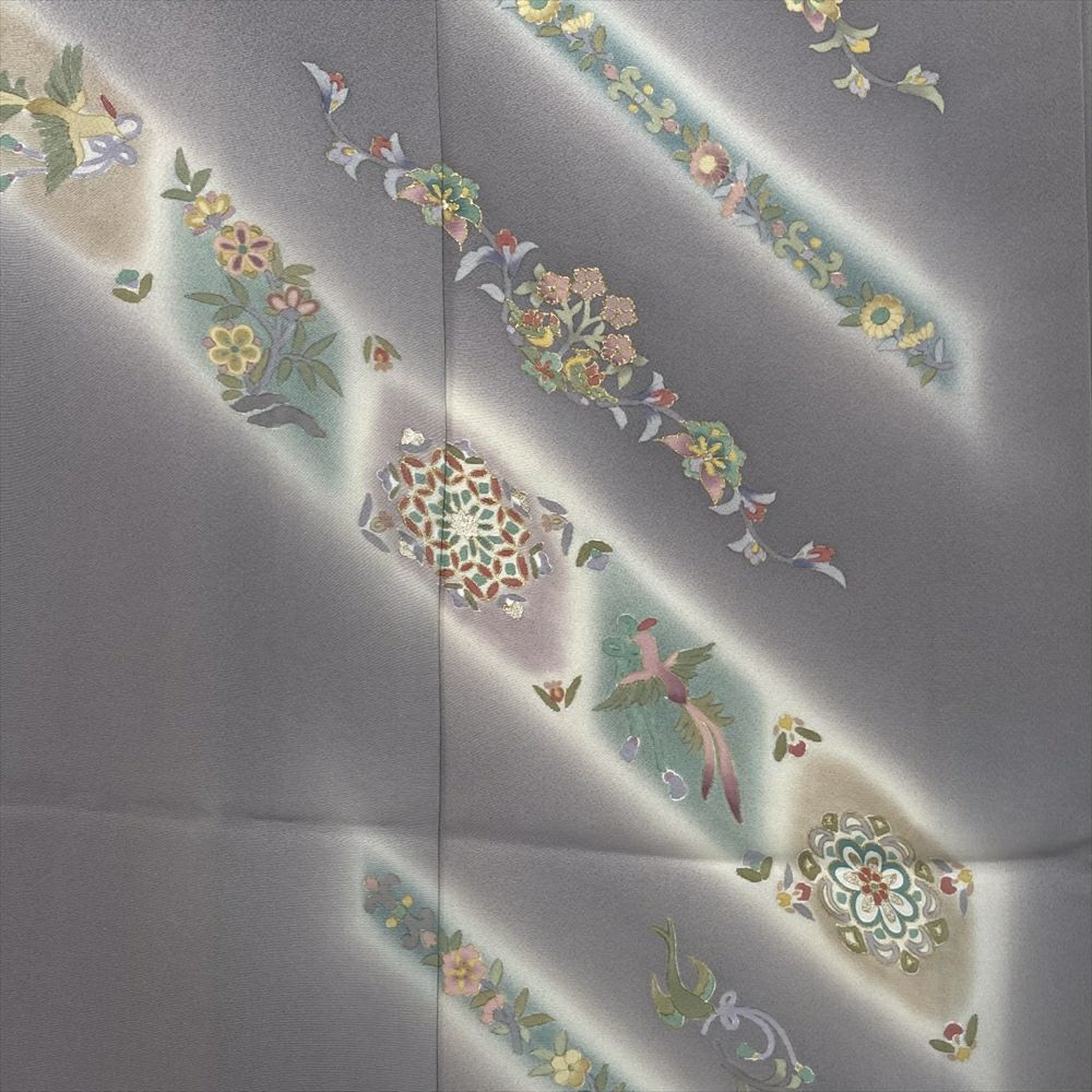 他の画像を見る (中古)小紋 灰ピンク カジュアル ちりめん 染め 破れ色紙 花鳥 吉祥文 袷 S【身丈】156.5cm【裄丈】67cm 通常価格 ¥ 16,500 のところ ¥ 11,550 税込 お気に入りに登録する