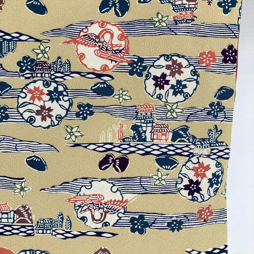 他の画像を見る (中古)小紋 濃卵色 黄色 カジュアル ちりめん 型絵染め 家屋 雪輪に花鳥 袷 SS【身丈】152cm【裄丈】65cm 通常価格 ¥ 11,000 のところ ¥ 7,700 税込 お気に入りに登録する