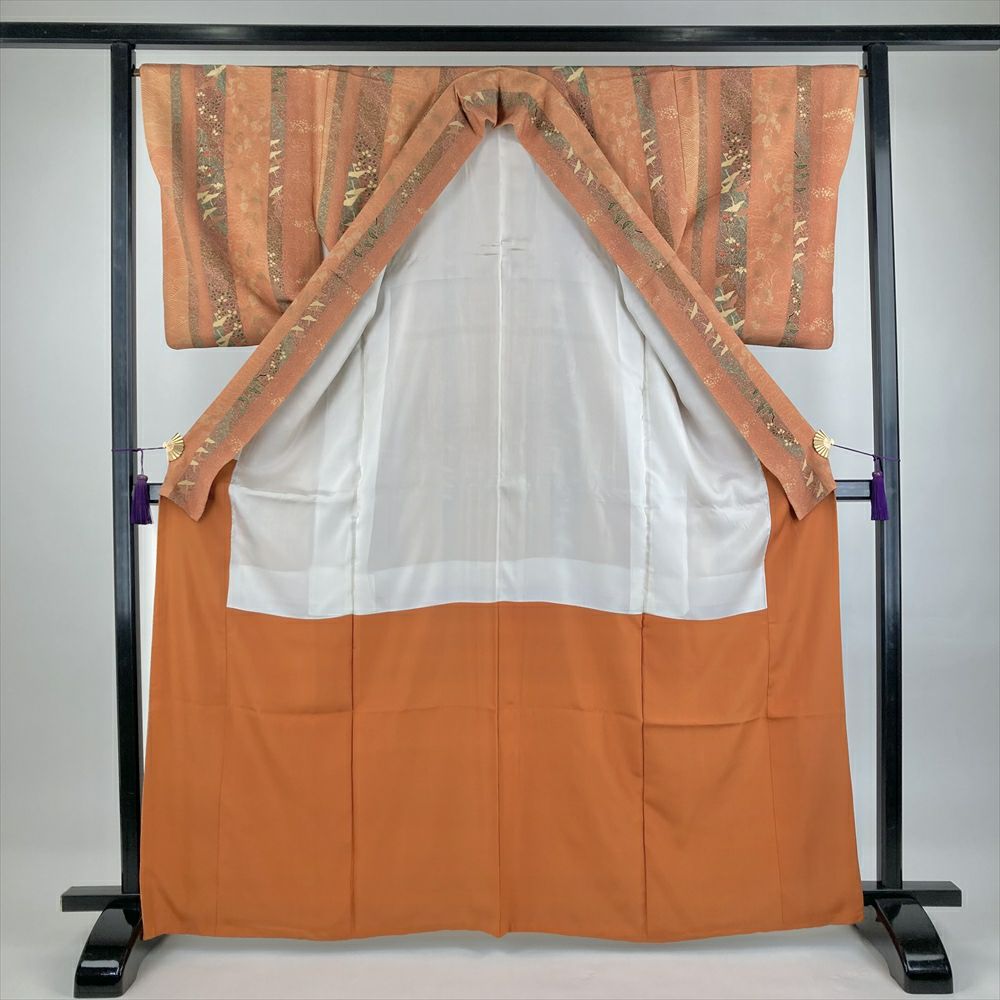 他の画像を見る (中古) 小紋 灰橙 オレンジ カジュアル ちりめん 染め 金彩 花鳥 琳派調 袷 M【身丈】162cm【裄丈】66.5cm 通常価格 ¥ 22,000 のところ ¥ 15,400 税込 お気に入りに登録する