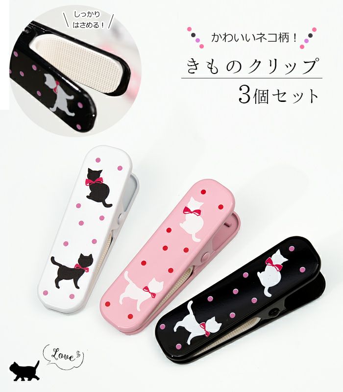 他の画像を見る (新品)きものクリップ3個組 ねこ 都粋 ¥ 1,518 税込 きものクリップ3個組 3個 セット きもの クリップ 衿止め 仮止め 裾止め 袖止め 着付け 小物 着付け教室 おでかけ 便利 アイテム グッズ お食事 ランチ 浴衣 ゆかた 猫 ねこ ネコ 水玉 大 大きめ お気に入りに登録する