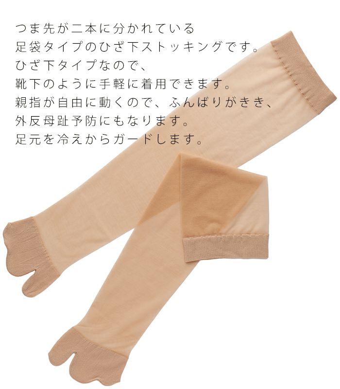 他の画像を見る (新品)ひざ下ストッキング(フリーサイズ)都粋 ¥ 1,760 税込 膝下 ストッキング 靴下 ソックス 足袋タイプ 二本指 外反母趾 予防 フリー サイズ 春 夏 秋 冬 冷え ベージュ ヌードカラー お気に入りに登録する