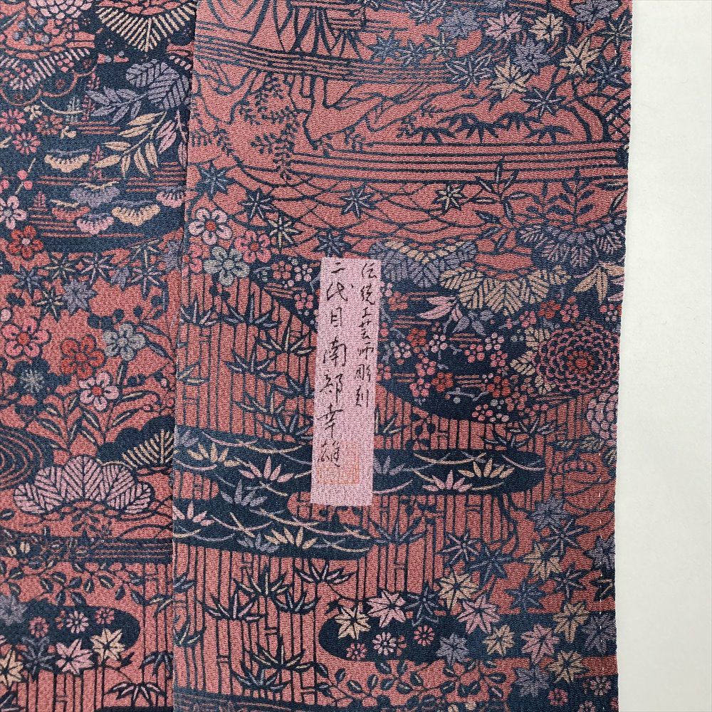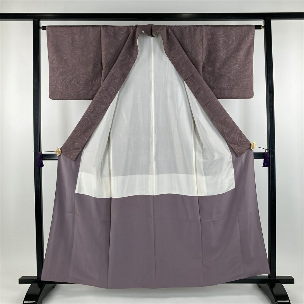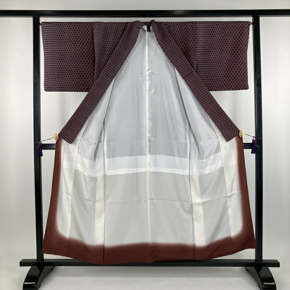 他の画像を見る (中古) 小紋 薄芥子色 柿色 茶色 オレンジ カジュアル ちりめん 染め 雲取り 和更紗調 袷 SS 【身丈】152cm【裄丈】63.5cm ¥ 11,000 税込 お気に入りに登録する
