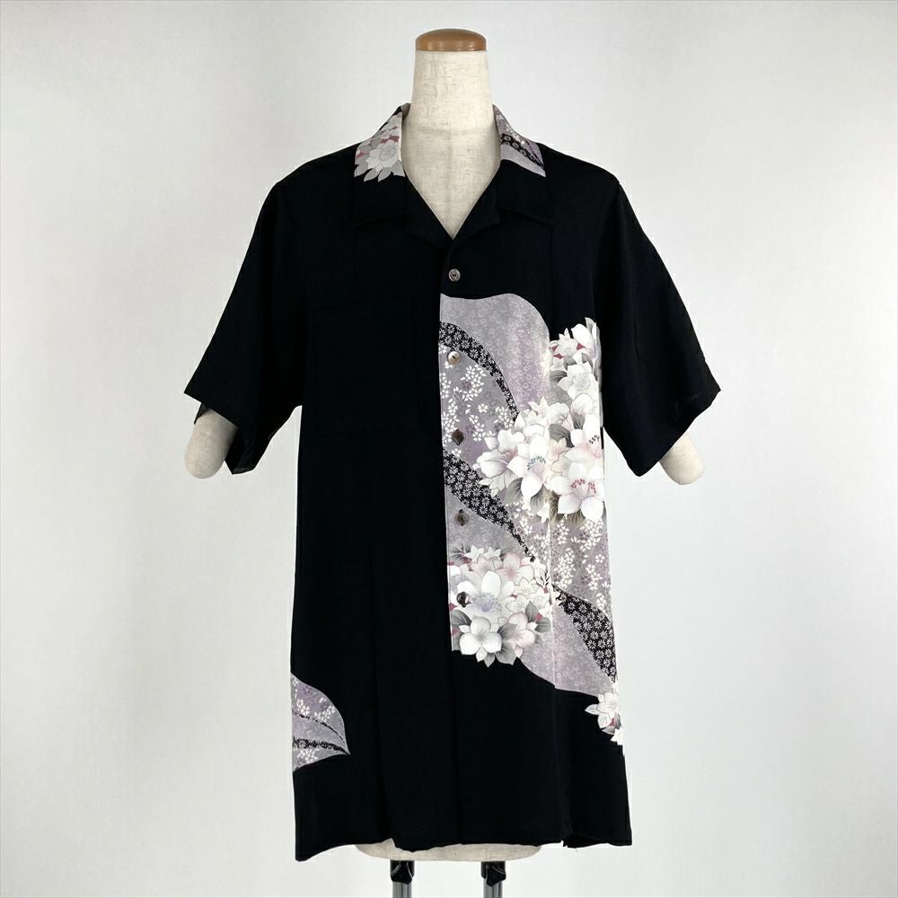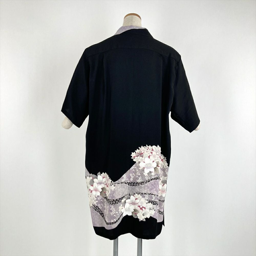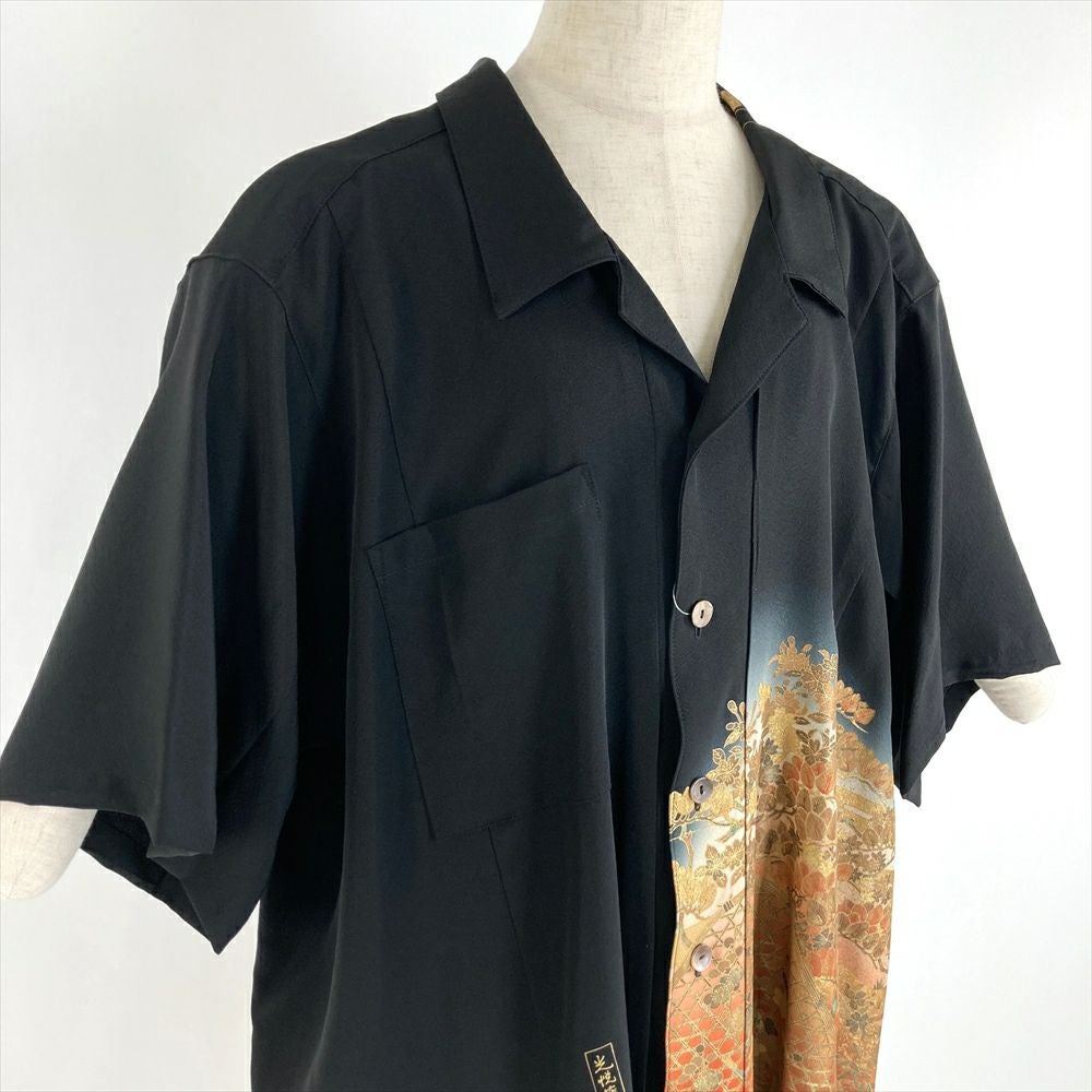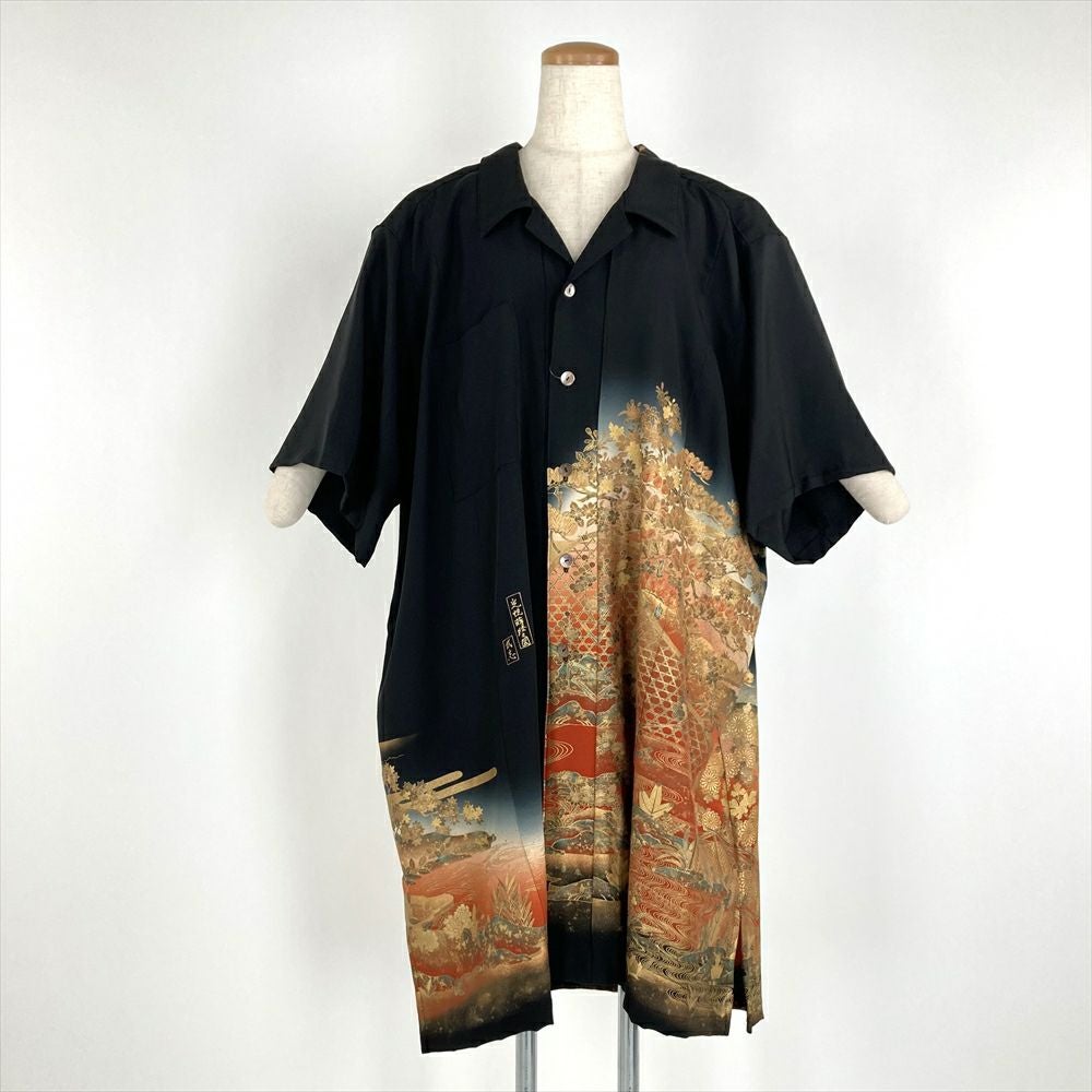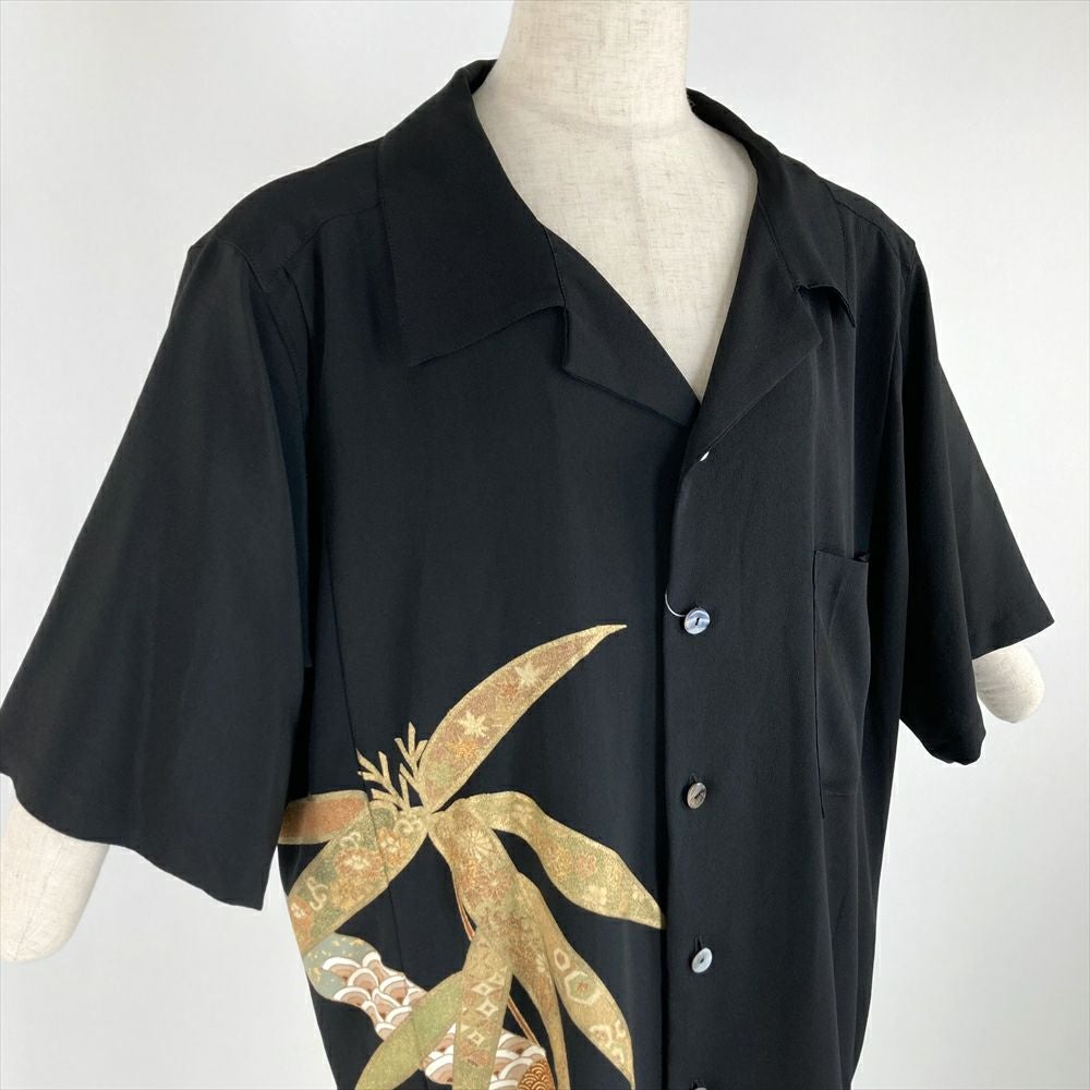 他の画像を見る (リメイク) アロハシャツロング3L 黒色 カジュアル 金彩 四季花 庭園 ¥ 36,300 税込 在庫切れ きもの カジュアル 黒色 金彩 四季花 庭園 リメイク お気に入りに登録する
