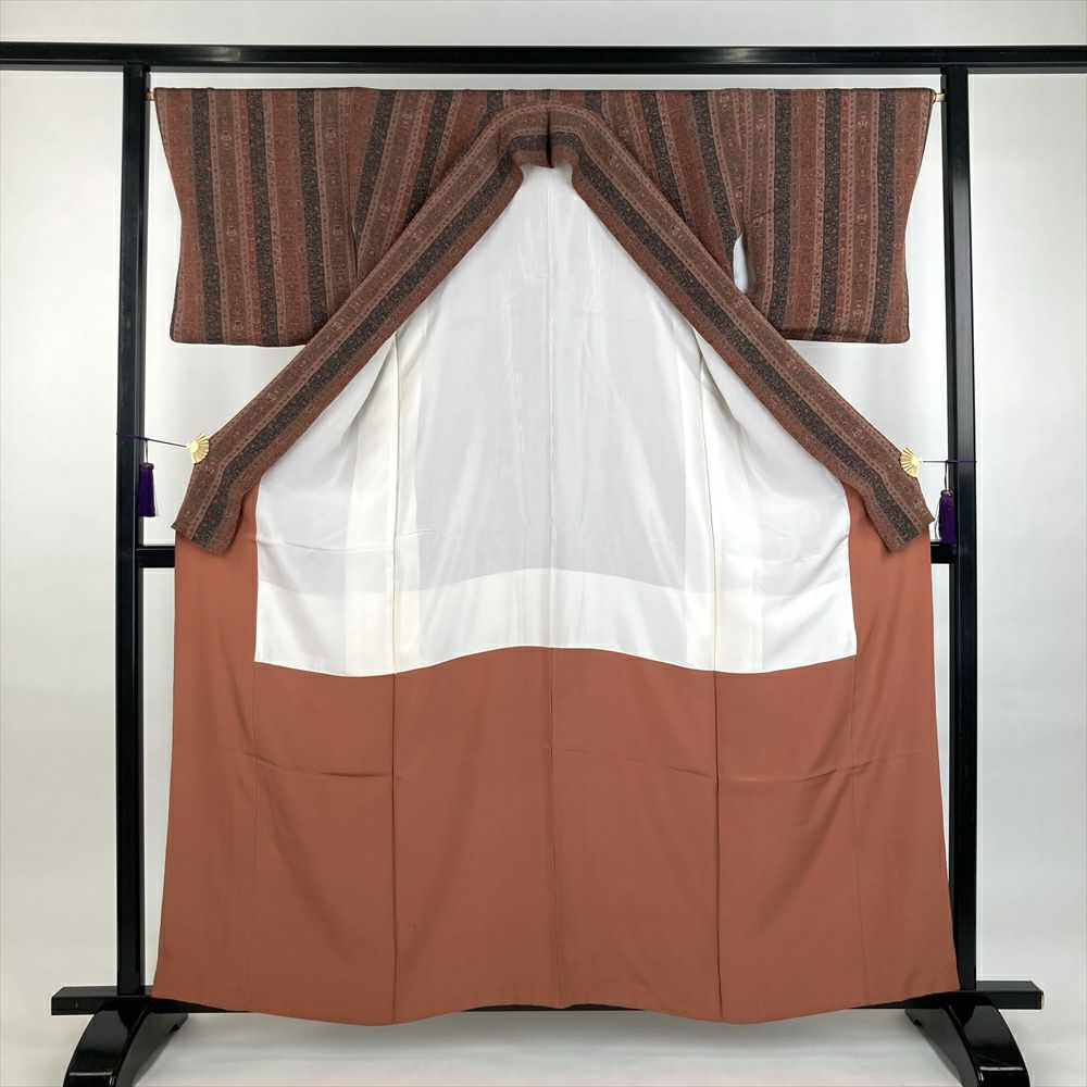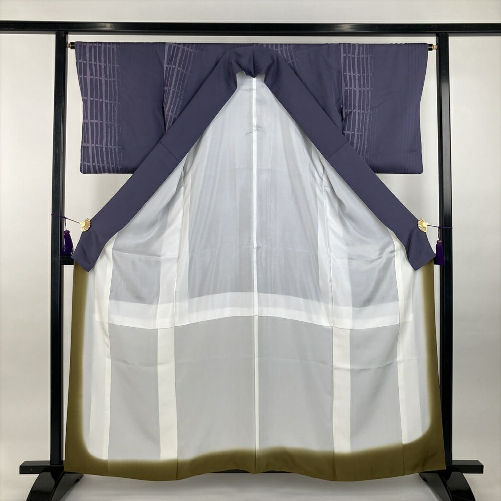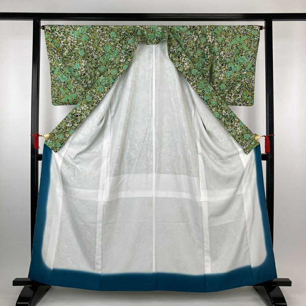 他の画像を見る (中古)小紋 グレージュ ピンク 水色 カジュアル 段替わり ぼかし染め 金彩 破れ格子 梅 楓 吉祥文 袷 S【身丈】155cm 【裄丈】67cm ¥ 27,500 税込 お気に入りに登録する