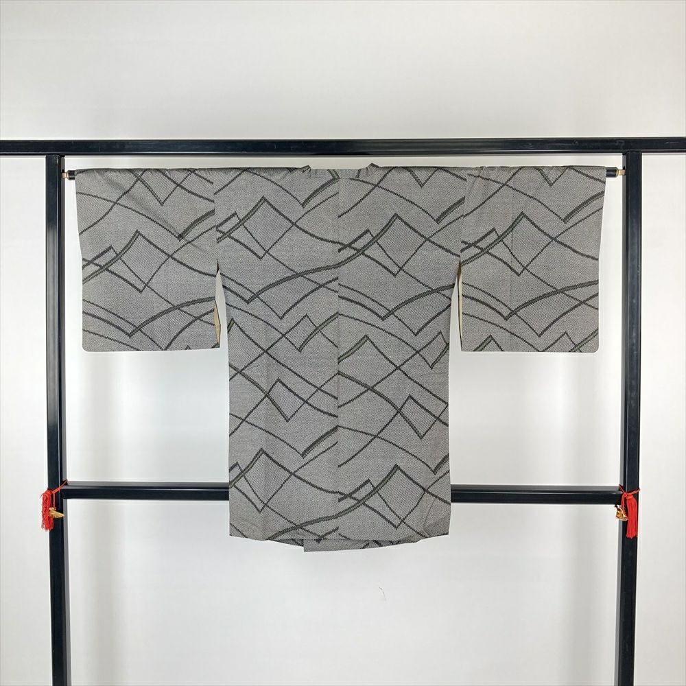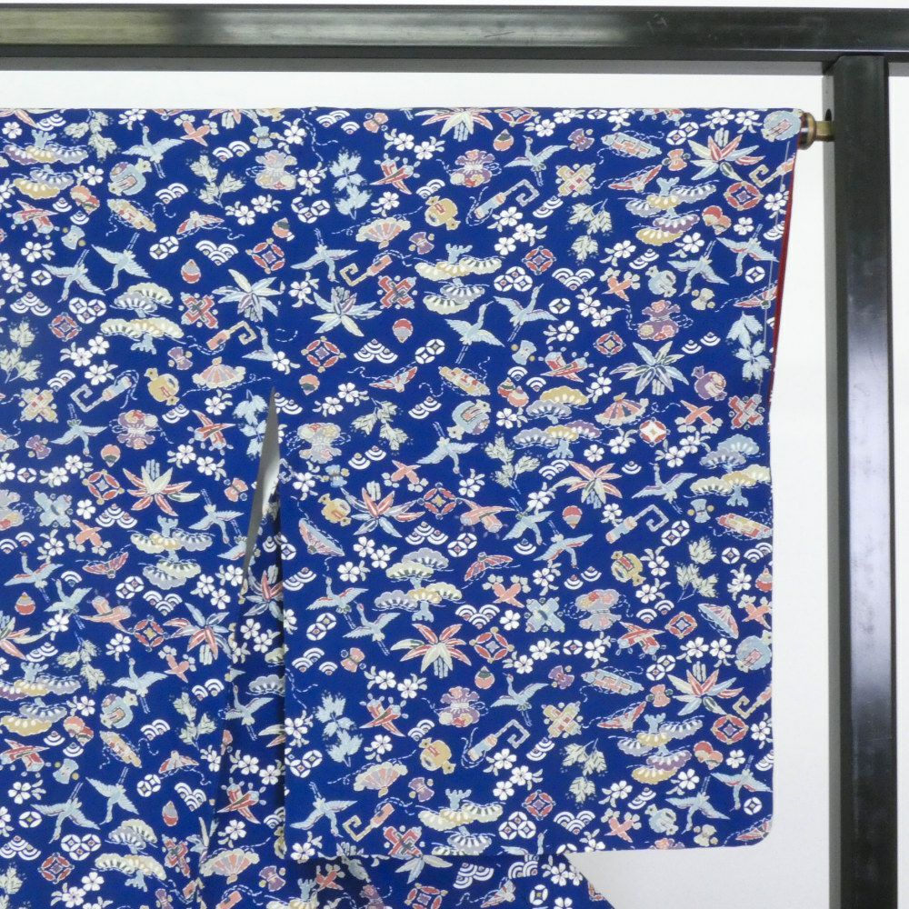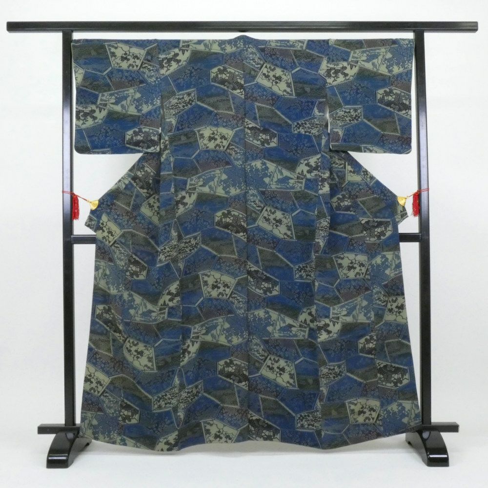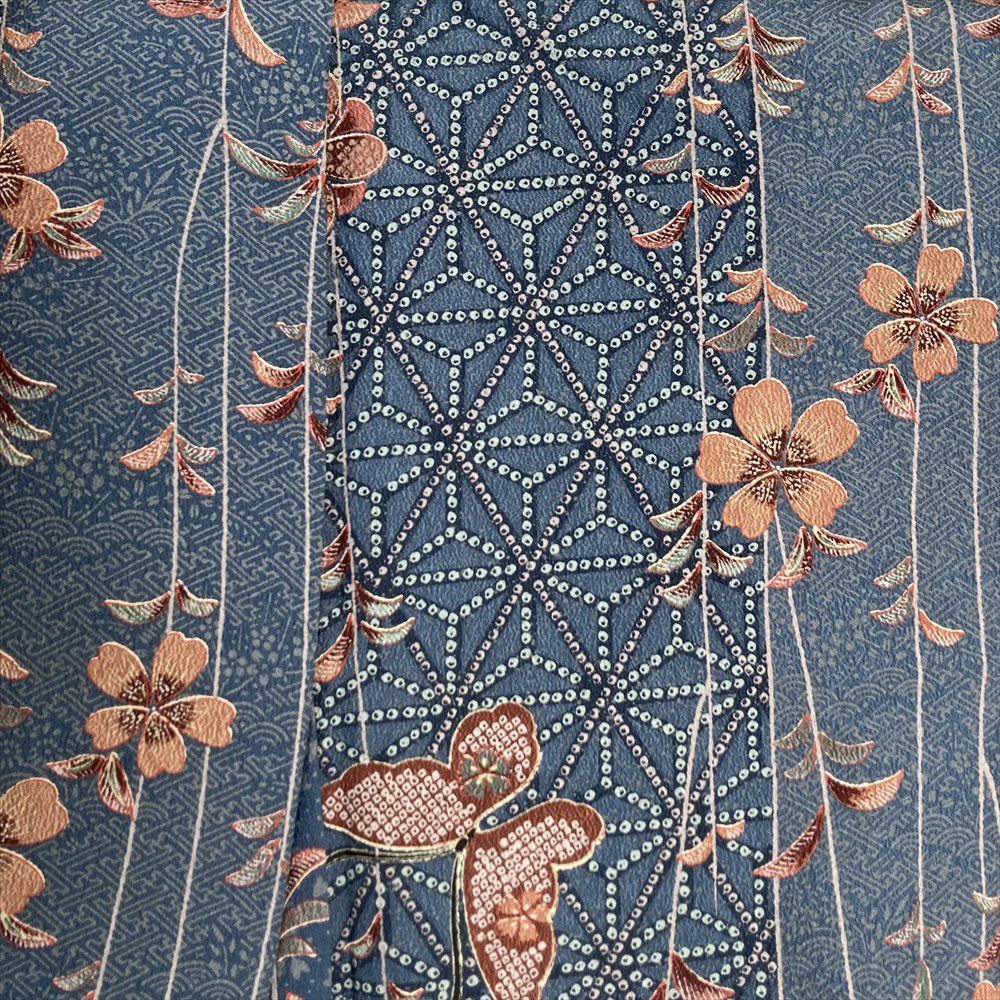 他の画像を見る (中古)小紋 ブルーグレー ポリエステル 洗える ちりめん調 鹿の子 蝶 花 麻の葉 青海波 紗綾型 袷 S【身丈】155cm 【裄丈】66cm ¥ 8,000 税込 お気に入りに登録する