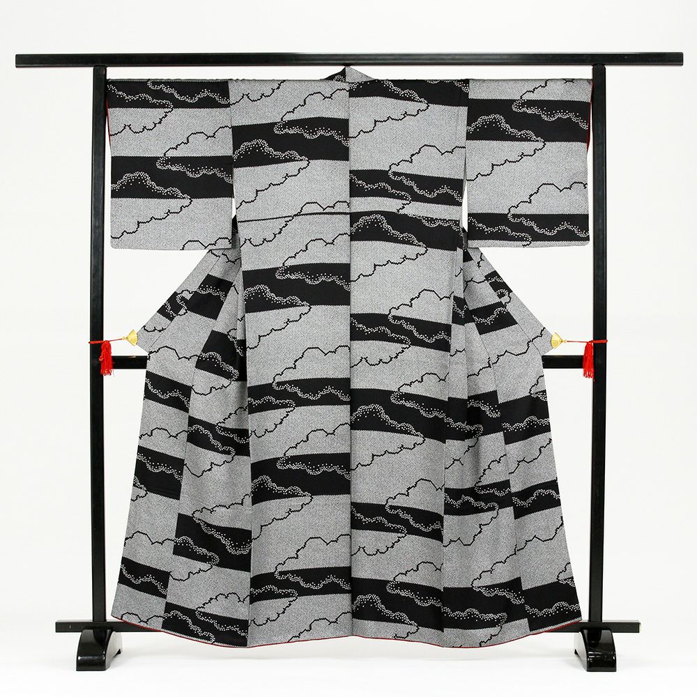 他の画像を見る (中古)夏訪問着 黒 フォーマル 絽 流水 波頭 銀彩 グリッター ぼかし染め S【身丈】158.5cm【裄丈】67.5cm 状態ランクS ¥ 110,000 税込 お気に入りに登録する