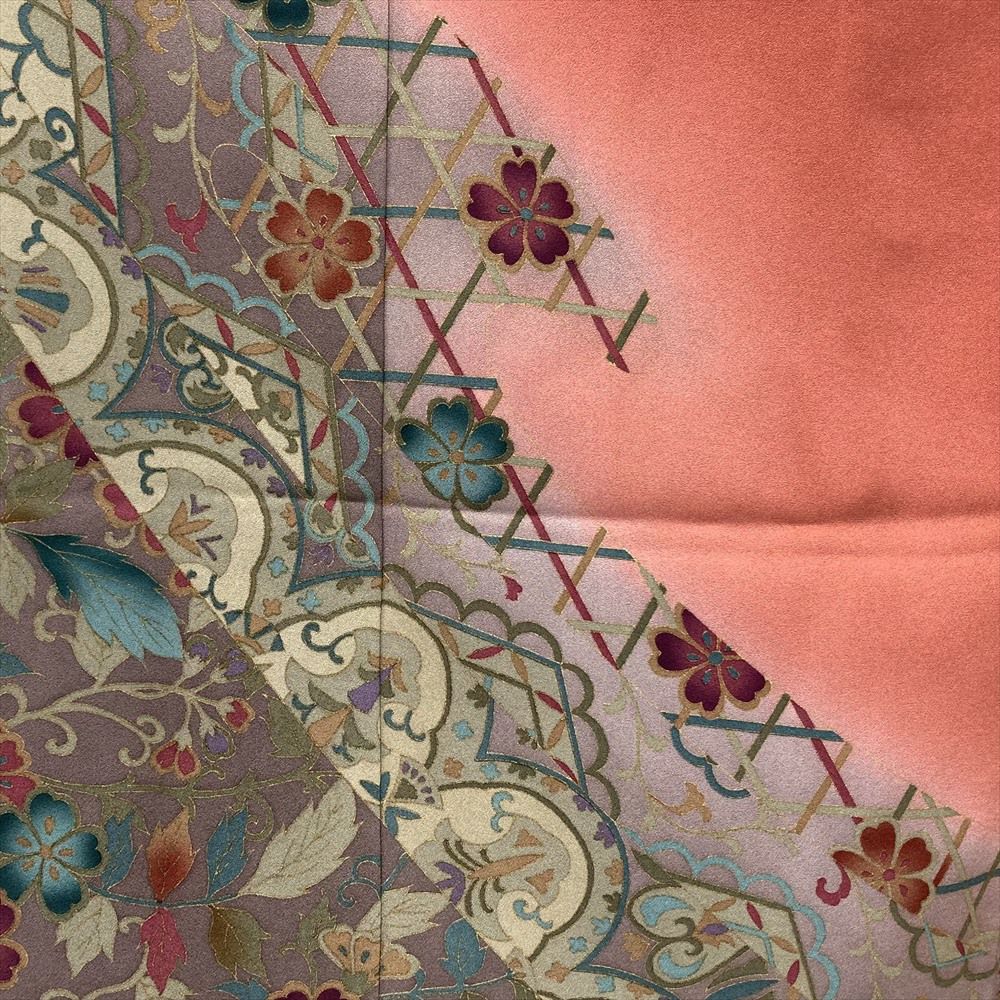 他の画像を見る (中古)付下 サーモンピンク フォーマル セミフォーマル ぼかし染め 金彩 植物 オリエンタル 袷 SS【身丈】152cm 【裄丈】65cm ¥ 11,000 税込 お気に入りに登録する