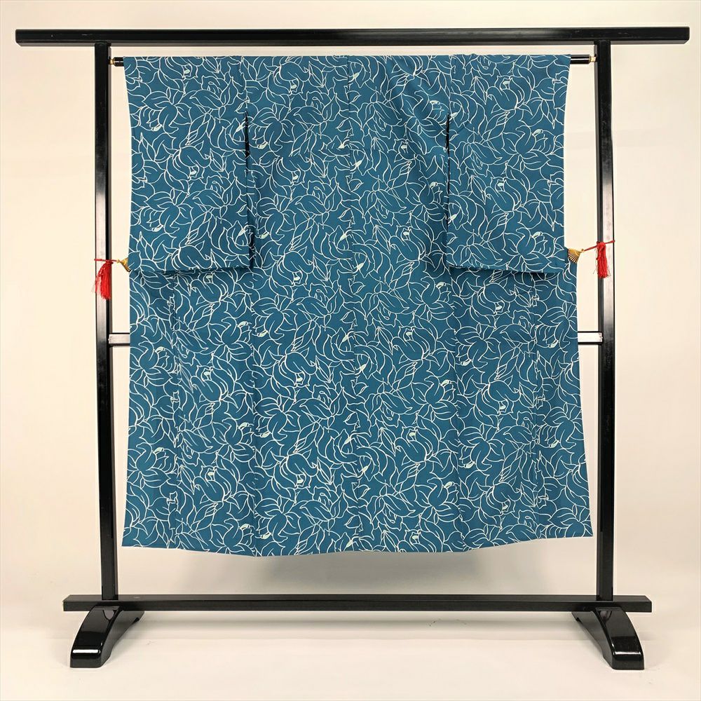 他の画像を見る (中古) 単衣色無地 孔雀色 青緑 カジュアル オリエンタル 唐花文様 地紋織り 単衣 絹【身丈】154cm【裄丈】63.5cm 新入荷 ¥ 16,500 税込 在庫切れ お気に入りに登録する
