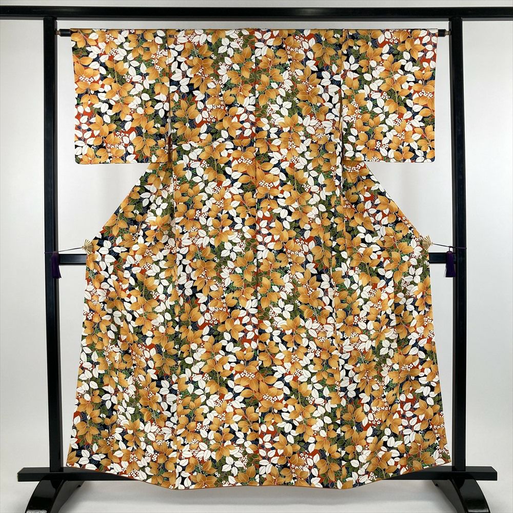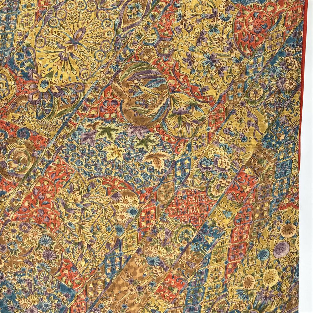 他の画像を見る (中古)小紋 マルチカラー 茶 紺 カジュアル ちりめん 染め 切り嵌め 和更紗 オリエンタル調 袷 M【身丈】160.5cm【裄丈】69cm ¥ 16,500 税込 お気に入りに登録する