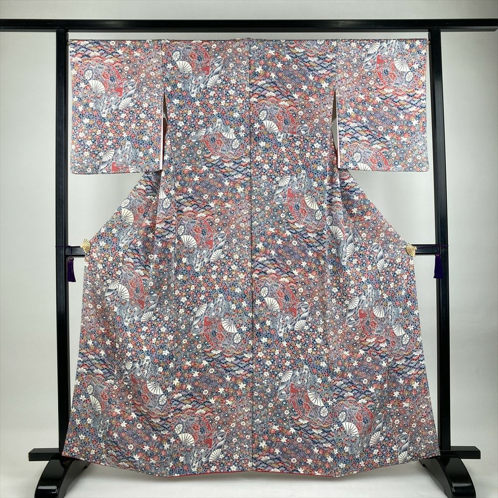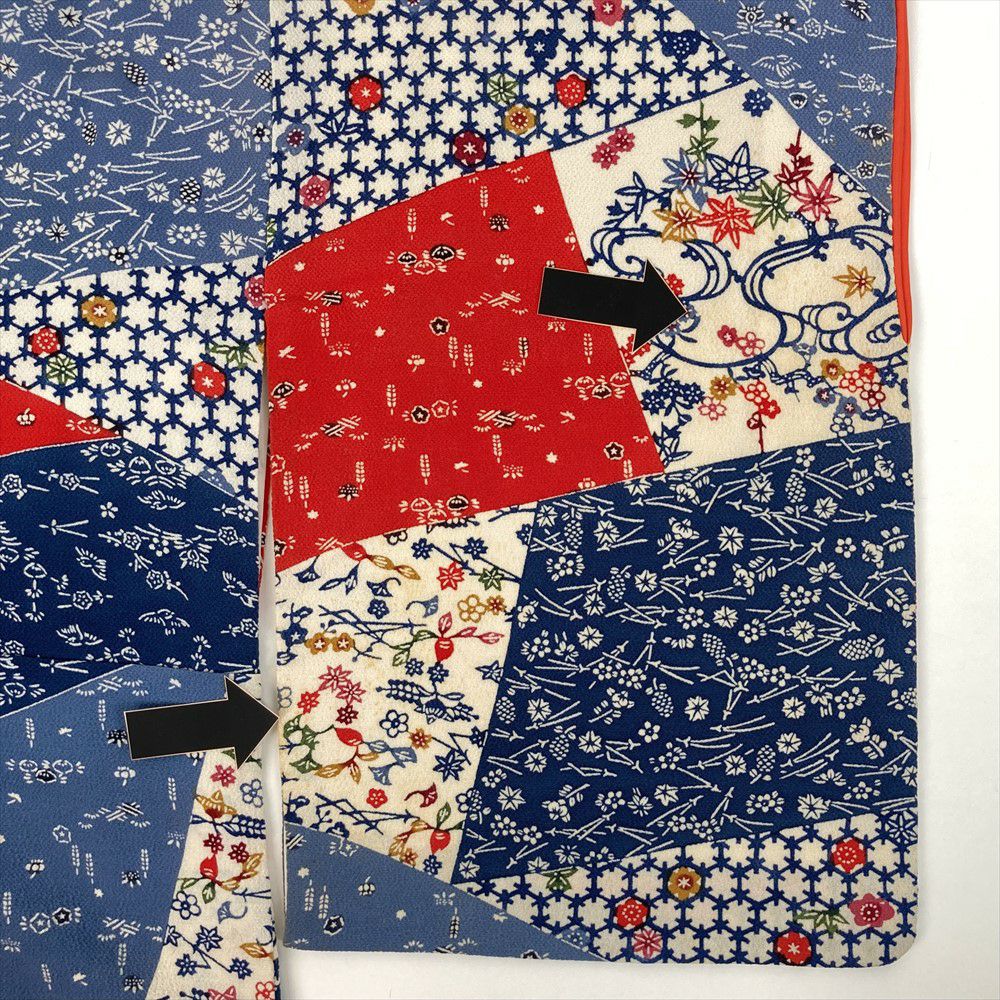 他の画像を見る (中古) 小紋 赤 青 薄藍 マルチカラー カジュアル ちりめん 染め 切り嵌め 吹き寄せ 四季花 袷 S【身丈】155.5cm【裄丈】64cm ¥ 11,000 税込 お気に入りに登録する