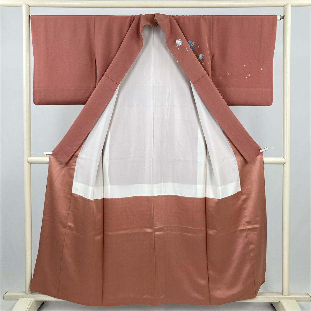 他の画像を見る (中古) 紬 グレージュ 灰茶 カジュアル 二代目川村久太郎 落款 染め大島 幾何学 袷 絹 【身丈】151.5cm【裄丈】63cm 新入荷 ¥ 55,000 税込 お気に入りに登録する