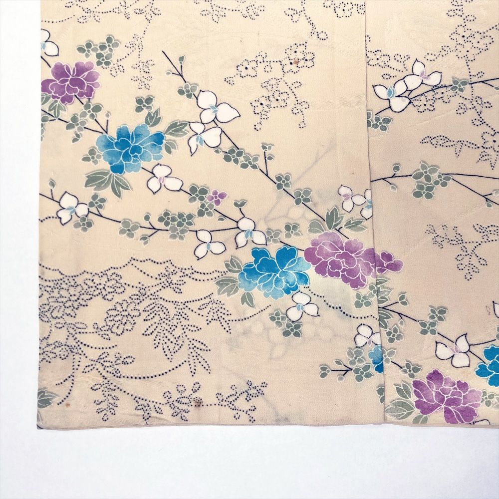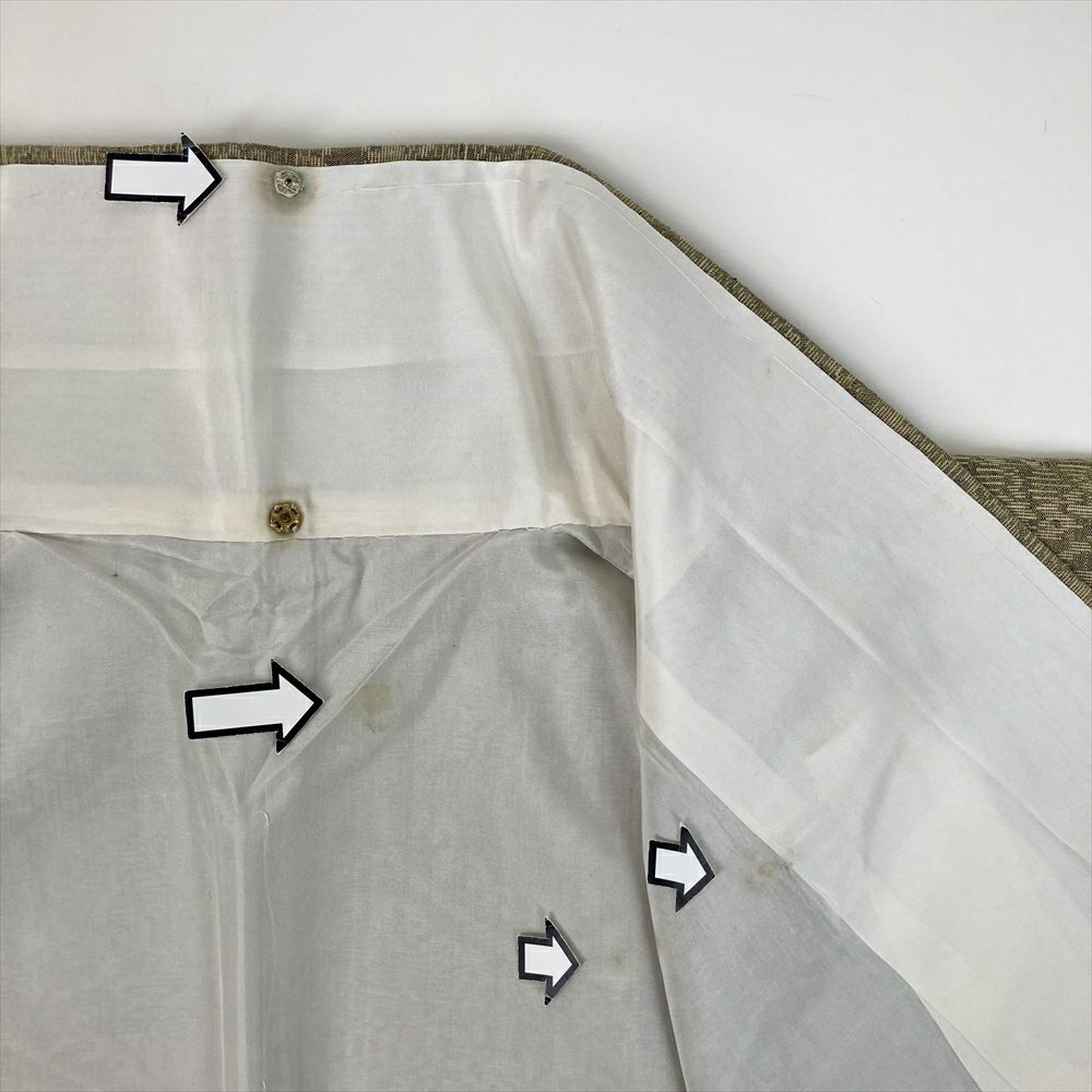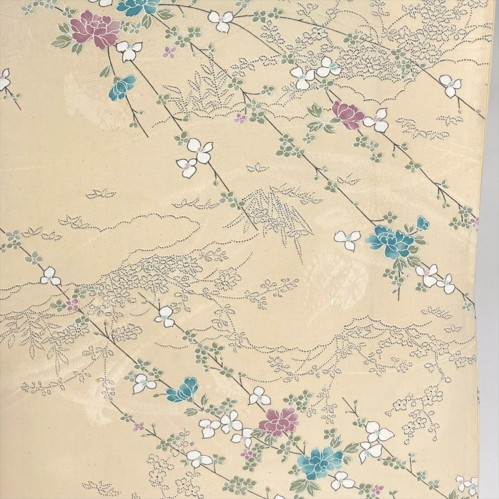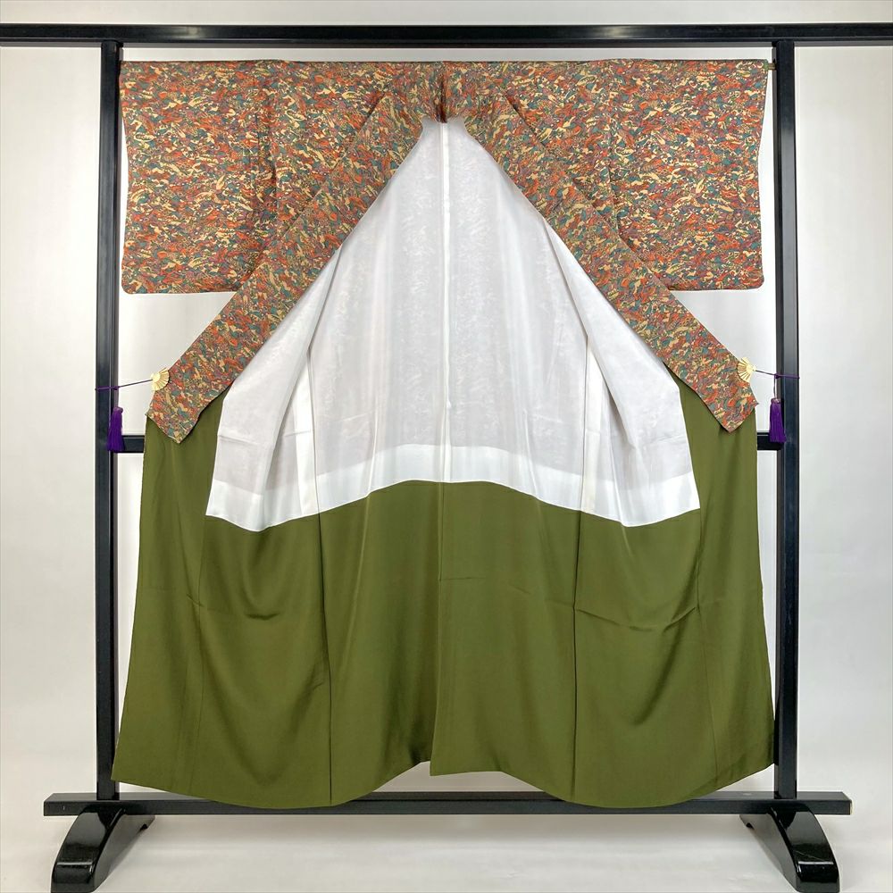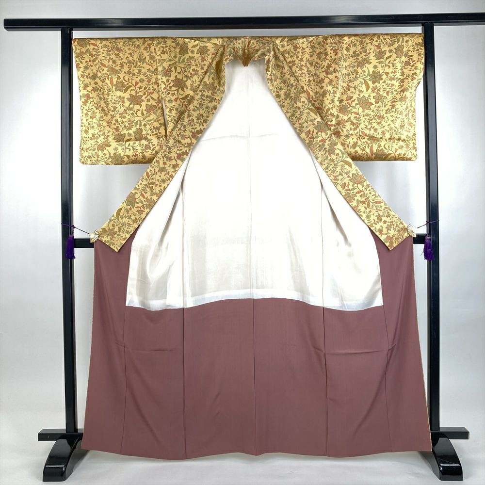 他の画像を見る (中古)小紋 ベージュ 黄色 緑 カジュアル ちりめん 染め 唐花唐草 吉祥文 オリエンタル 袷 SS【身丈】153cm【裄丈】66.5cm ¥ 16,500 税込 お気に入りに登録する