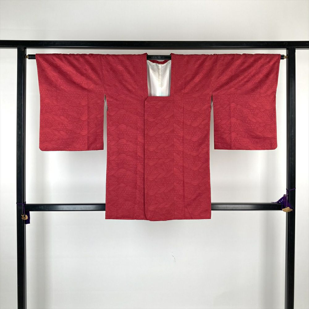 他の画像を見る (中古)リユース着物 道行コート ローズレッド 赤 ピンク カジュアル はおりもの 地紋織り 無地 おしゃれ羽裏 袷 未洗い【身丈】83cm 【裄丈】66cm MS763 未洗い ¥ 2,750 税込 お気に入りに登録する