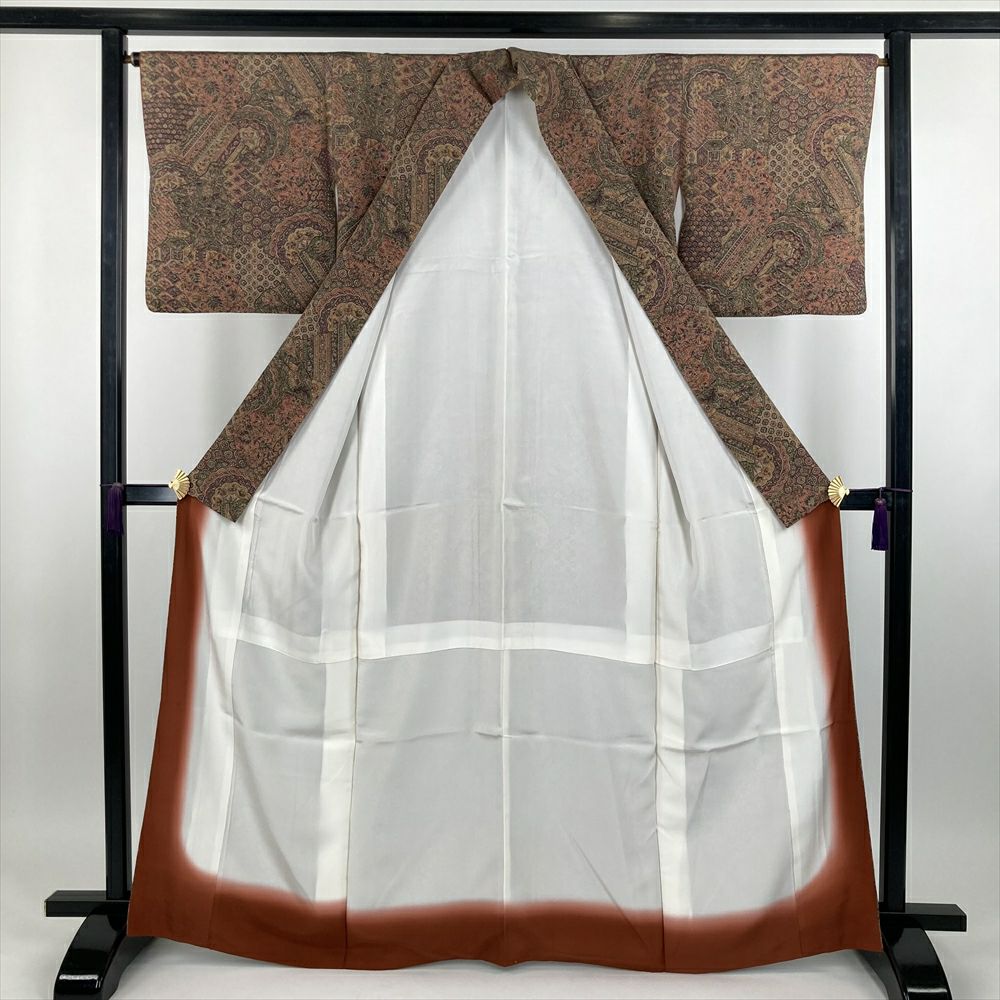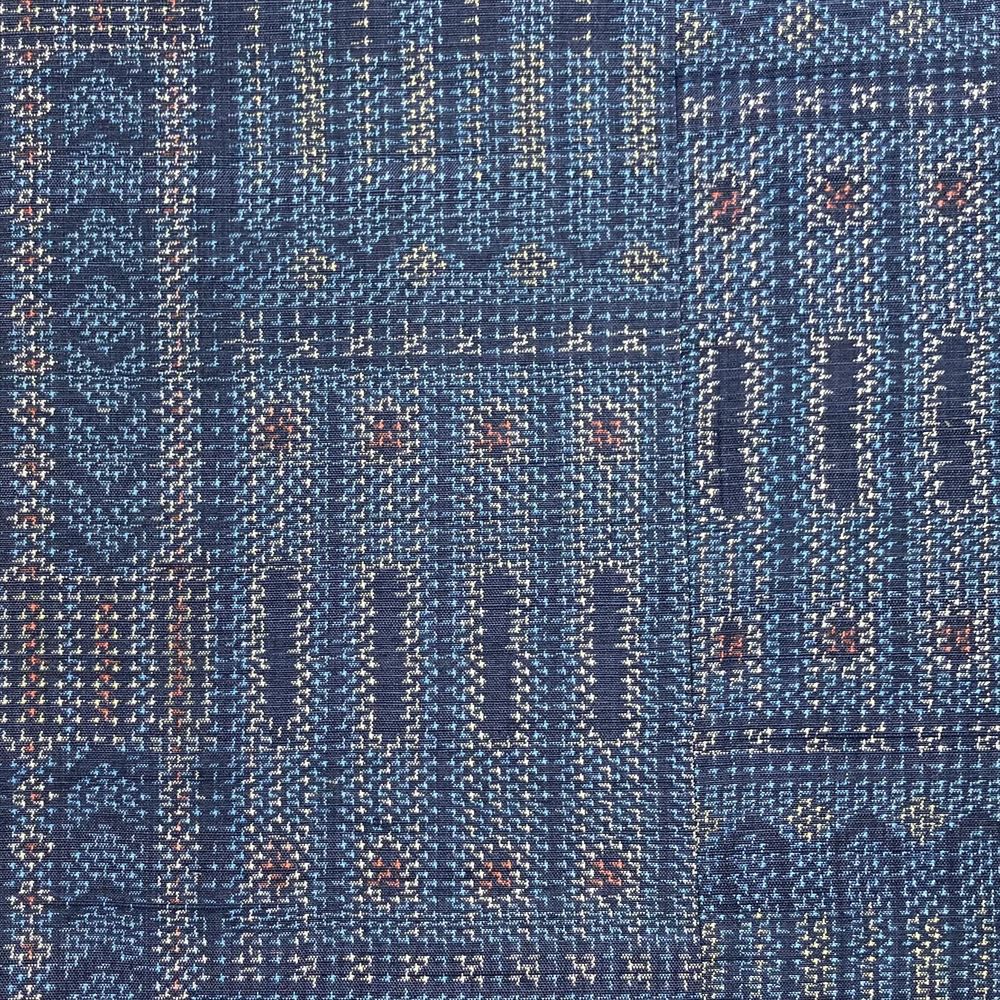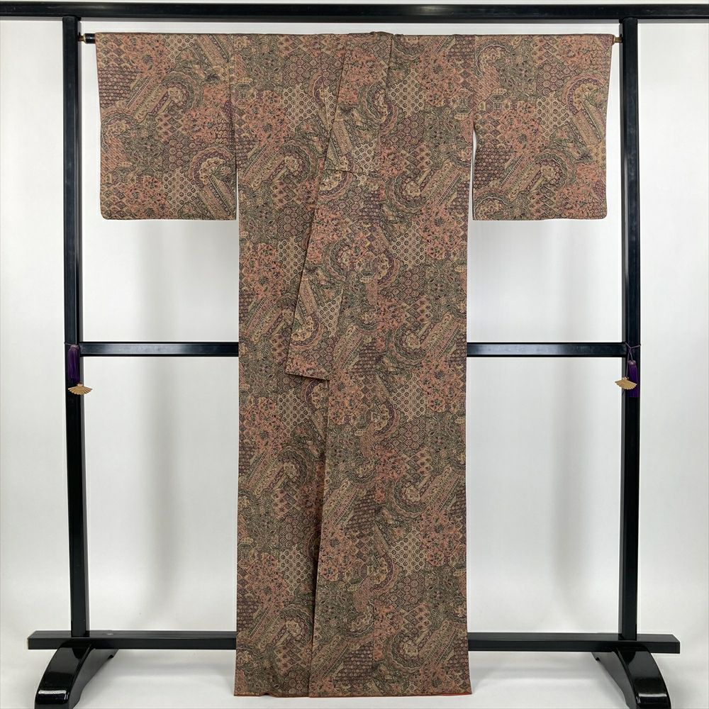 他の画像を見る (中古)小紋 マルチカラー 茶 紺 カジュアル ちりめん 染め 切り嵌め 和更紗 オリエンタル調 袷 M【身丈】160.5cm【裄丈】69cm ¥ 16,500 税込 お気に入りに登録する