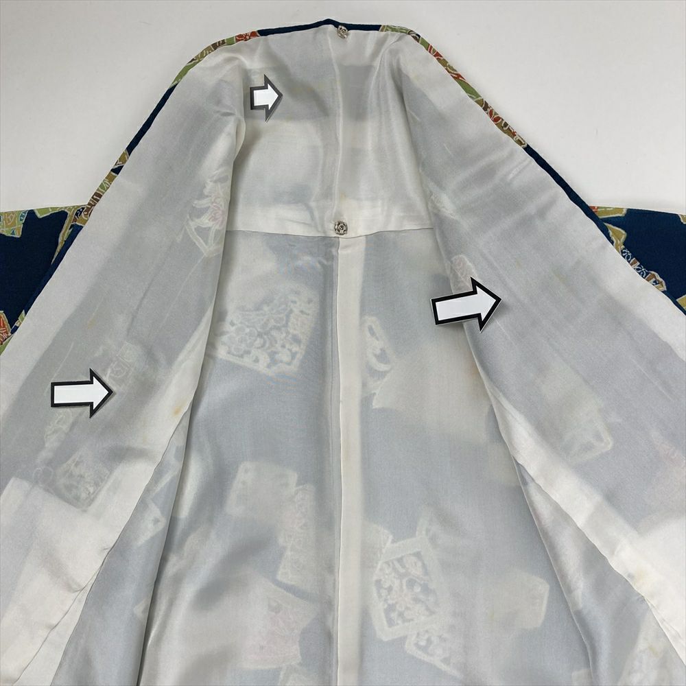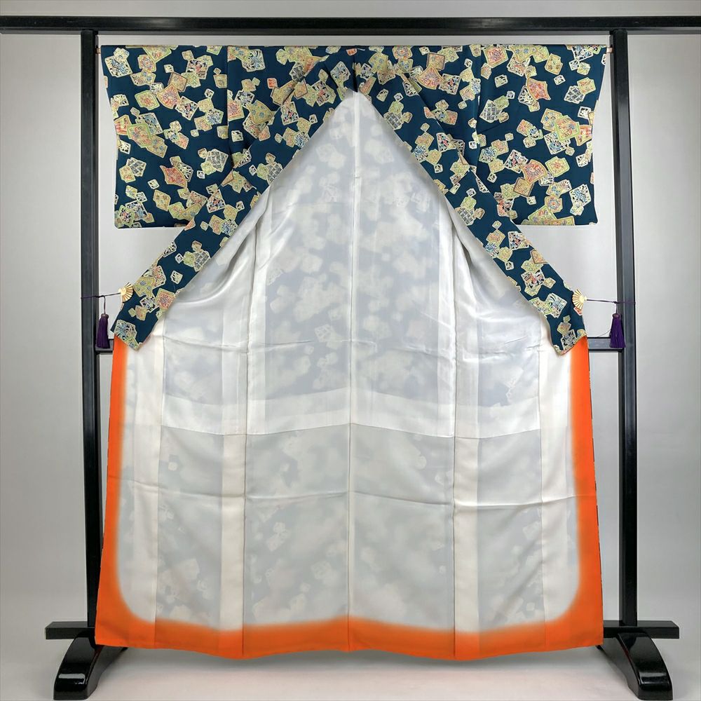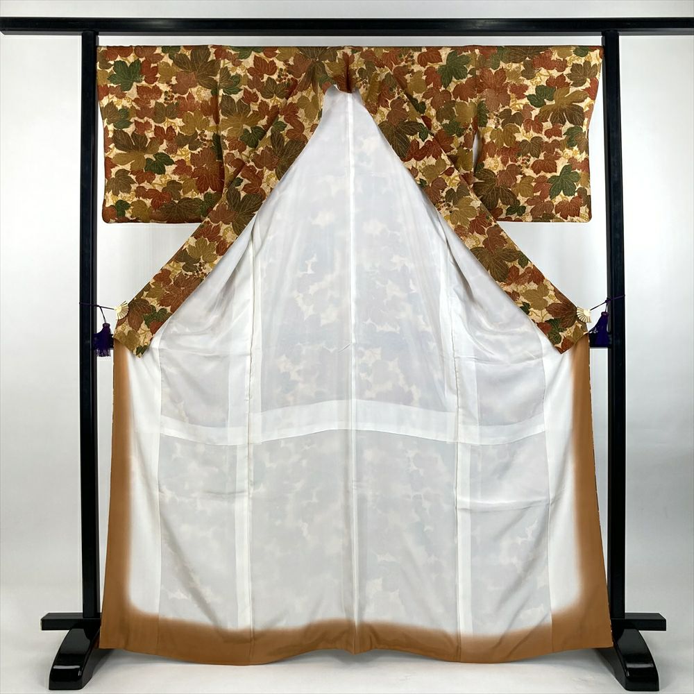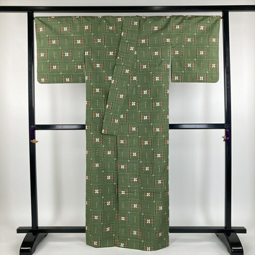 他の画像を見る (中古)小紋 マルチカラー 茶 紺 カジュアル ちりめん 染め 切り嵌め 和更紗 オリエンタル調 袷 M【身丈】160.5cm【裄丈】69cm ¥ 16,500 税込 お気に入りに登録する