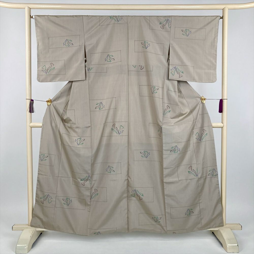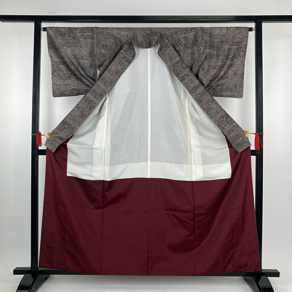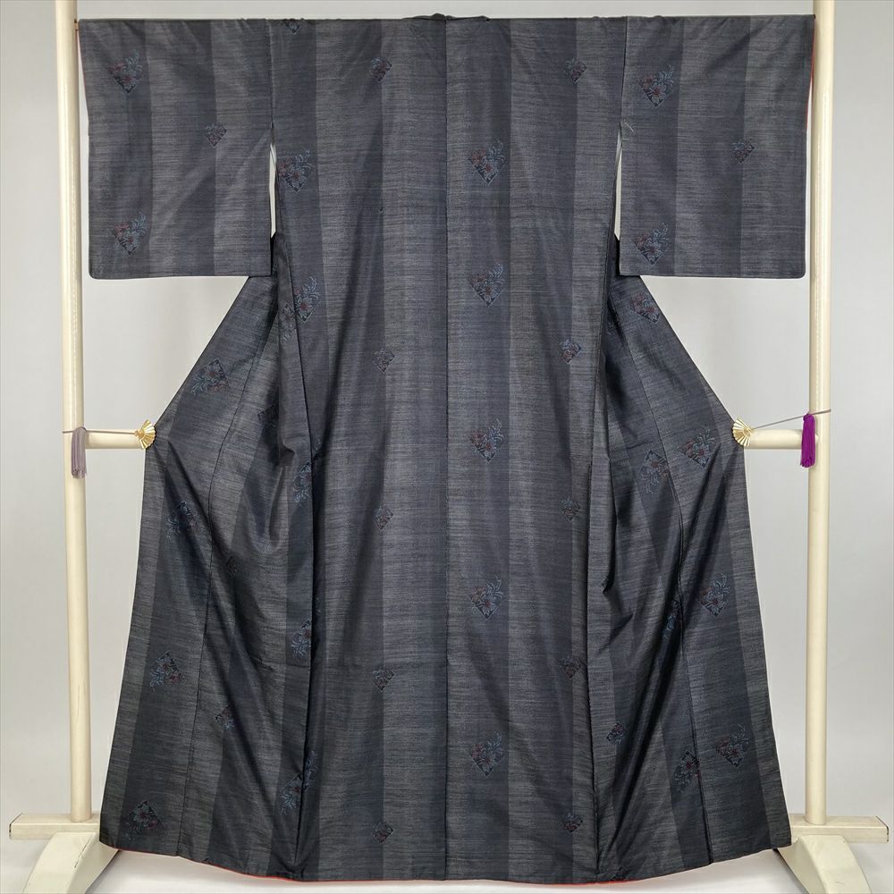 他の画像を見る (中古) 小紋 橙色 灰青色 茶色 マルチカラー カジュアル 地紋織り 染め 金彩 古典 袷 絹 【身丈】155.5cm【裄丈】65.5cm ¥ 22,000 税込 お気に入りに登録する