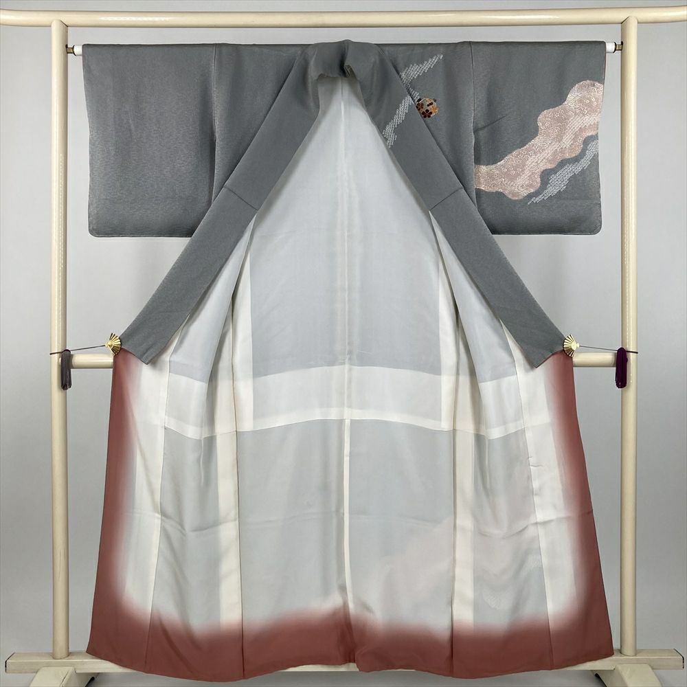 他の画像を見る (中古) 訪問着 薄珊瑚色 ピンク系 セミフォーマル 地紋織り ぼかし染め 御所車 四季花 流水 袷 SS 【身丈】151cm【裄丈】66cm ¥ 16,500 税込 お気に入りに登録する