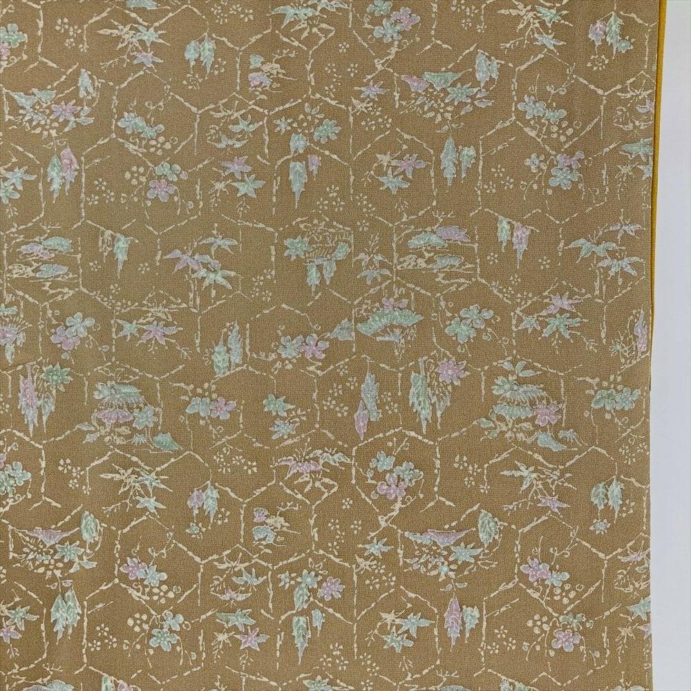 他の画像を見る (中古) 小紋 薄芥子色 柿色 茶色 オレンジ カジュアル ちりめん 染め 雲取り 和更紗調 袷 SS 【身丈】152cm【裄丈】63.5cm ¥ 11,000 税込 お気に入りに登録する