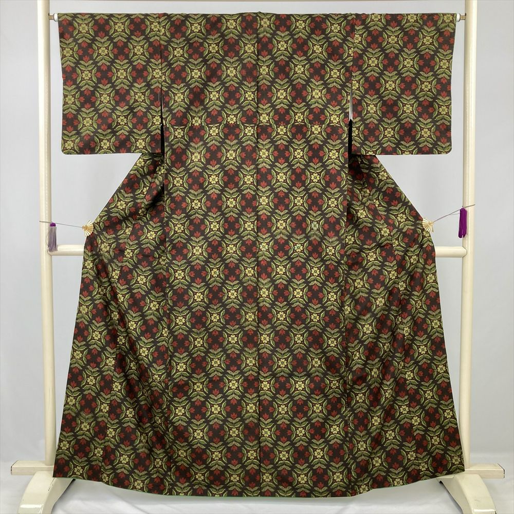 他の画像を見る (中古)大島紬 茶 カジュアル 絣 花木 小花 手織り 本場大島紬 友原織物(株)証紙あり 袷 S【身丈】156.5cm 【裄丈】68cm ¥ 110,000 税込 お気に入りに登録する
