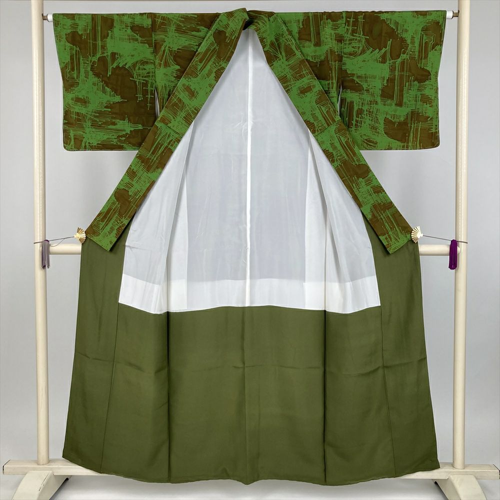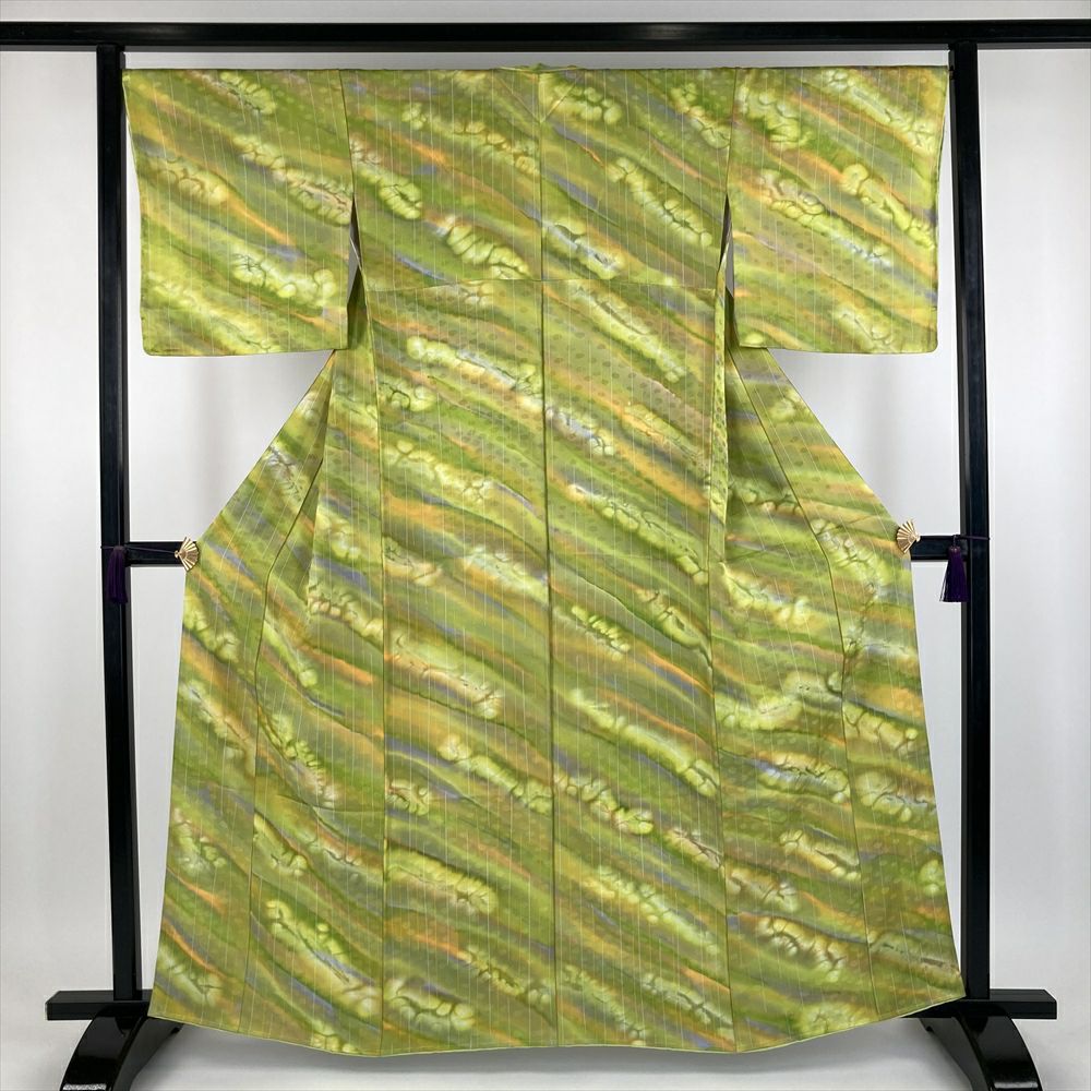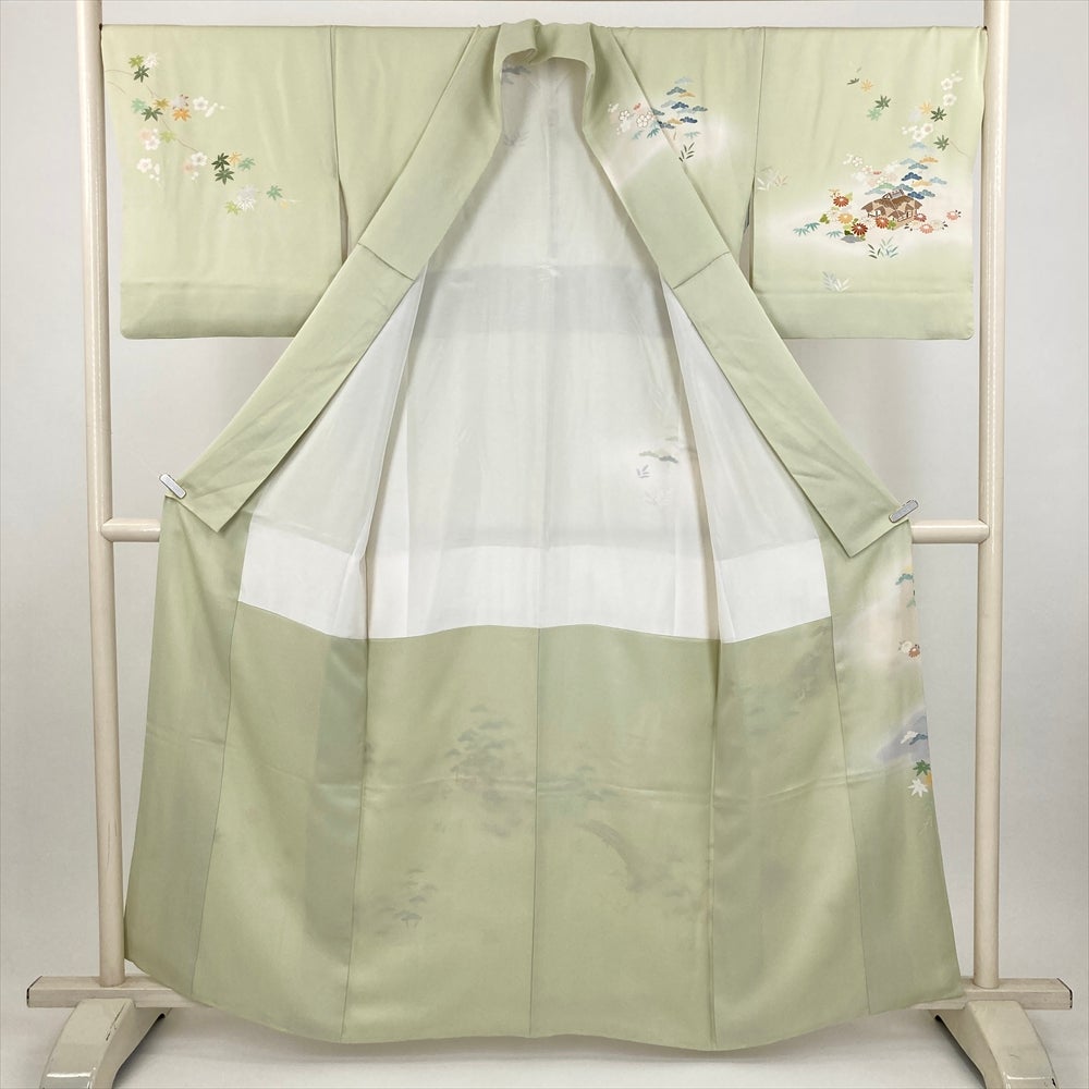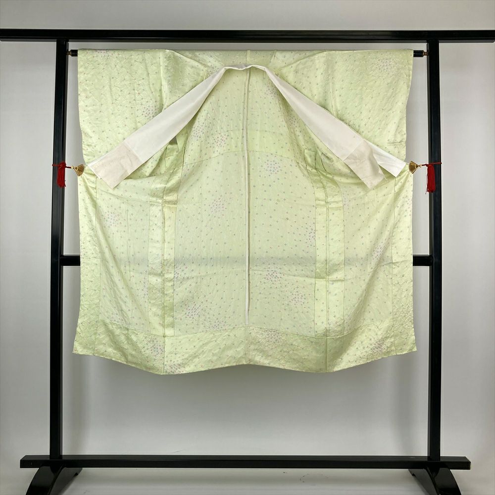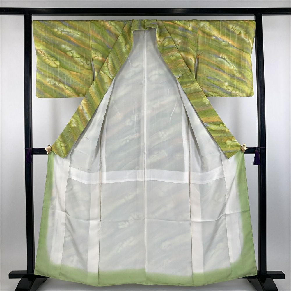 他の画像を見る (中古) 訪問着 黄緑 若芽色 ライムグリーン色 セミフォーマル ちりめん 染め 金彩 刺繍 袷 S【身丈】155.5cm【裄丈】67cm ¥ 88,000 税込 在庫切れ お気に入りに登録する