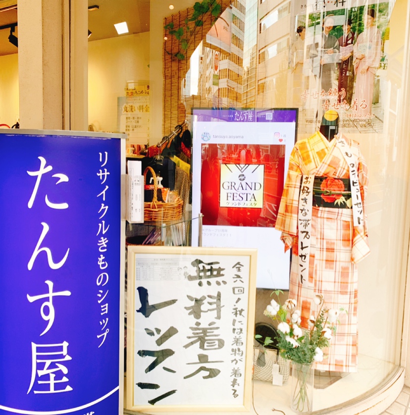 近隣に着付け教室も多いことから、お友達同士でお着物姿でのご来店も多く、また、男性のお客様もお気軽にご来店いただいております。青山店の気さくなスタッフがコーディネートのお手伝いをさせていただきます。周りを気にせず、畳スペースでゆっくりご試着ください♪