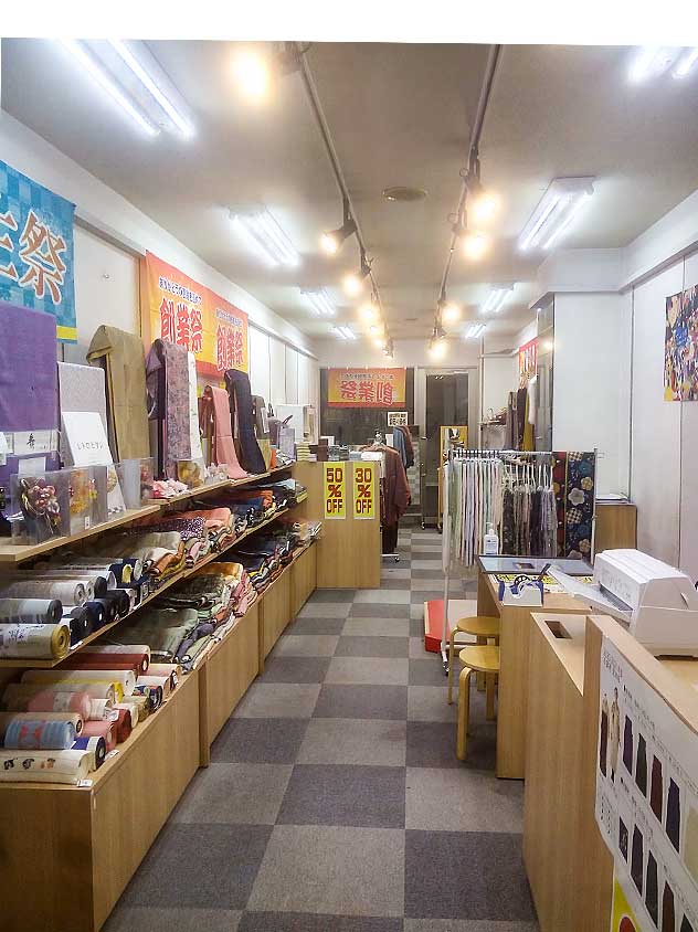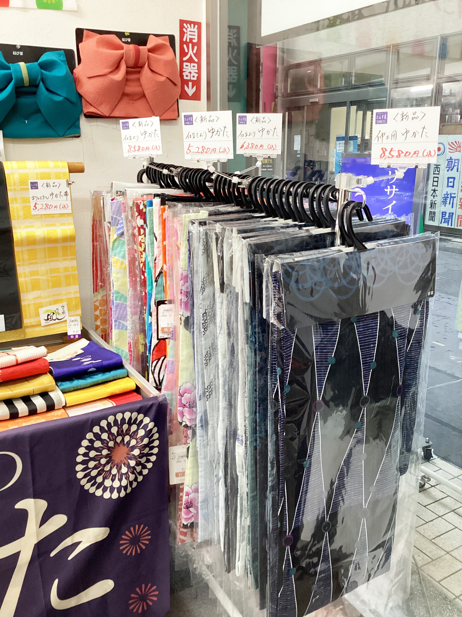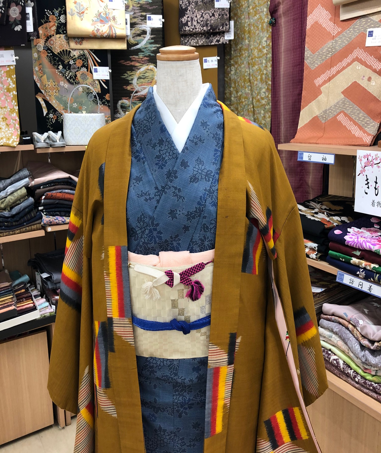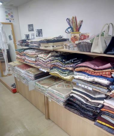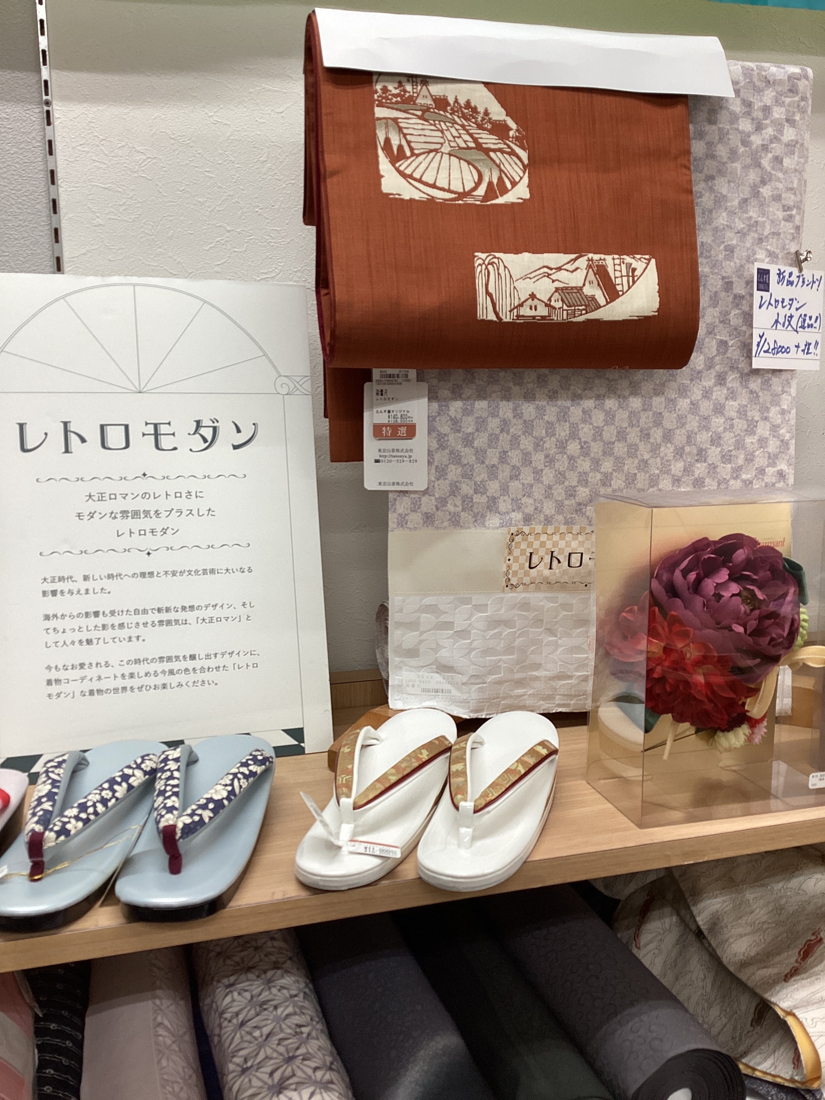 呉服店様のように、入りにくい、敷居が高い、という言葉は全く当店にはあてはまりません!(^。^) とにかく入りやすい、着物、帯、小物、その他いろいろを触りやすい、試着しやすい、という本当にお気軽に、散策と観光ができるお店です(^。^)