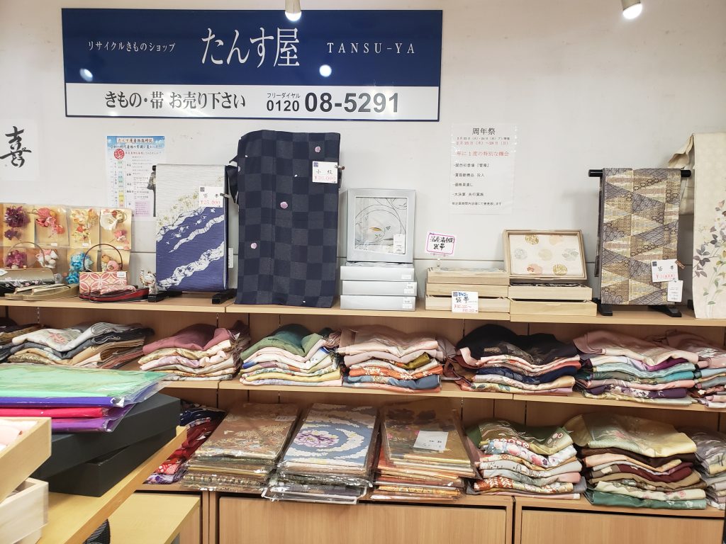 京都に来たなら、地下鉄京都駅より徒歩1分、「京都アバンティ」1階、靴のABC-MARTの隣にございます「リサイクルきものショップ たんす屋 京都アバンティ店」に、ぜひお立ち寄りくださいませ。