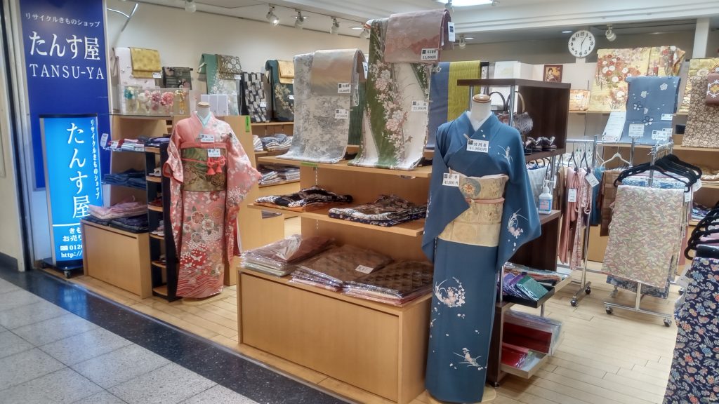 乗降客数世界一を誇るターミナル駅、新宿。山手線、埼京線、中央線、湘南新宿ラインから東京メトロ丸の内線などの地下鉄まで、あまりの路線の多さに駅構内で迷うことも。最新のトレンドファッション、雑貨、飲食店などが広範囲にわたり立ち並び、お天気を気にせずに楽しめる、新宿駅東口の靖国通りとモア4番街の地下にある、新宿最大の地下ショッピング街「新宿サブナード」の新宿区役所方面の3丁目エリアにございます「リユース着物 たんす屋 新宿サブナード店」です。