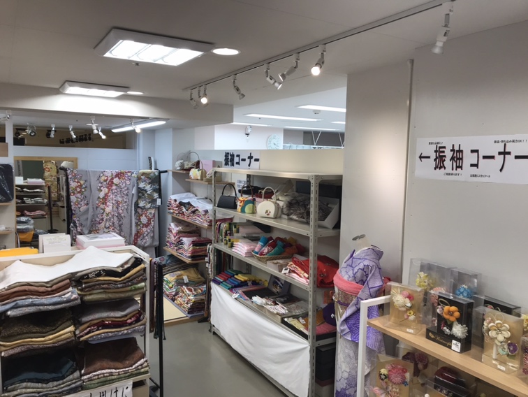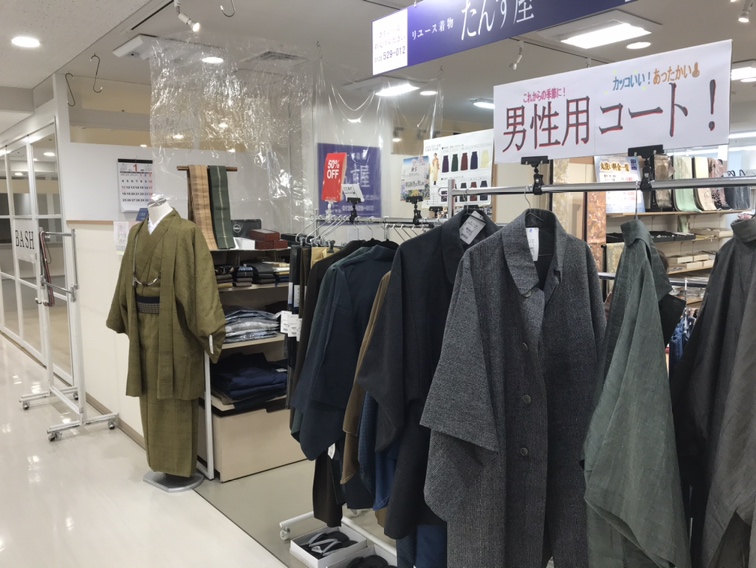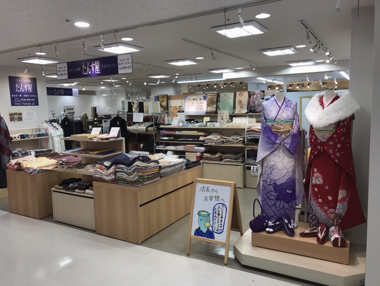 皆さんこんにちは、たんす屋立川店です! 当店は立川を拠点にしたリユース着物店になります。3年前髙島屋さんから「from中武」へと場所を移動し、近隣の皆様のおかげで、営業を続けさせていただいております。お店は立川駅北口からすぐのfrom中武の3階、中央エスカレータ―付近にございます。目印は、店長手書きのオリジナル看板です♪ 是非お店に遊びに来て下さい!